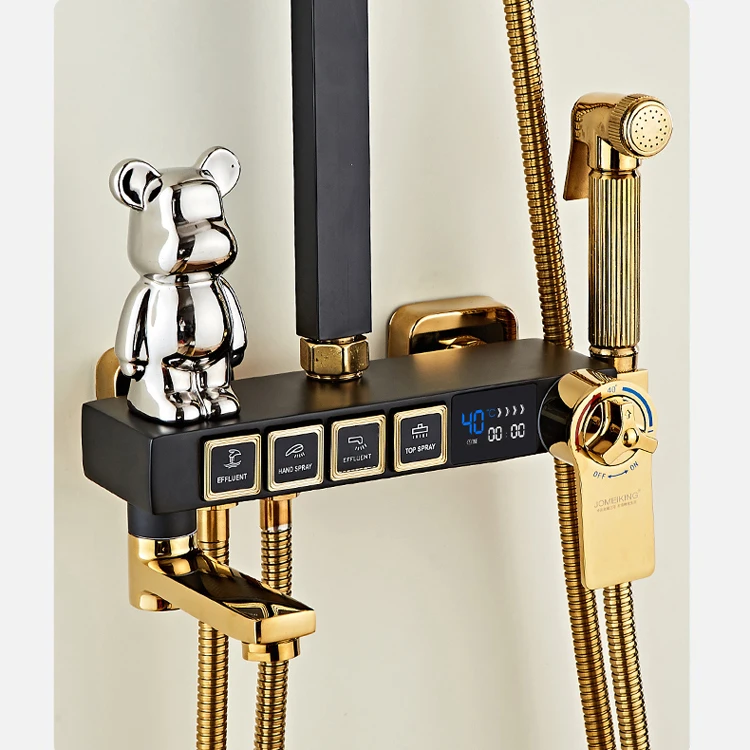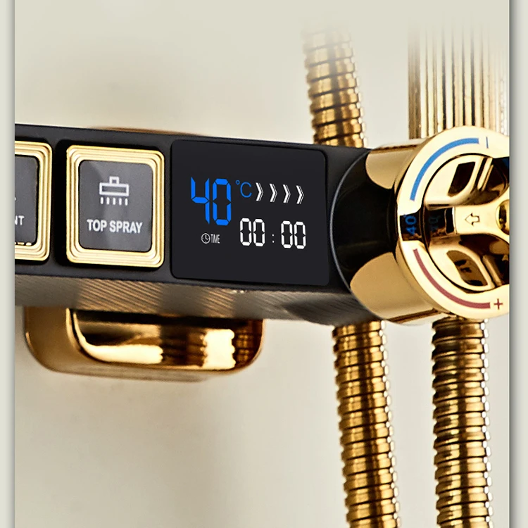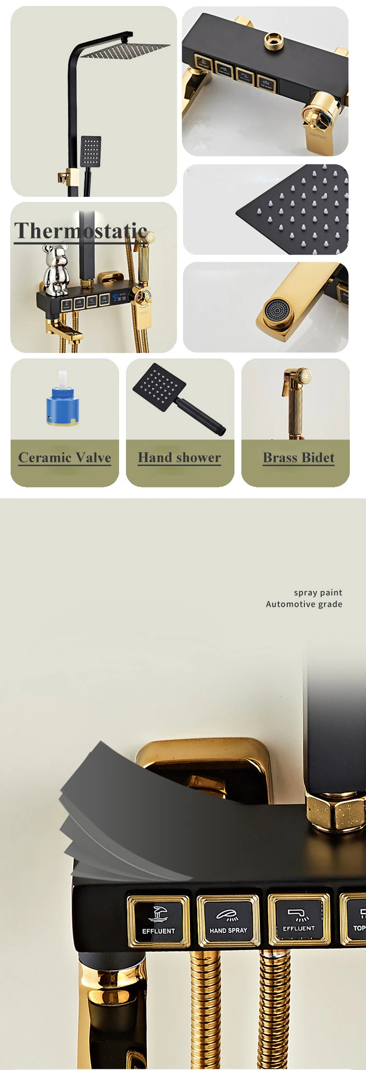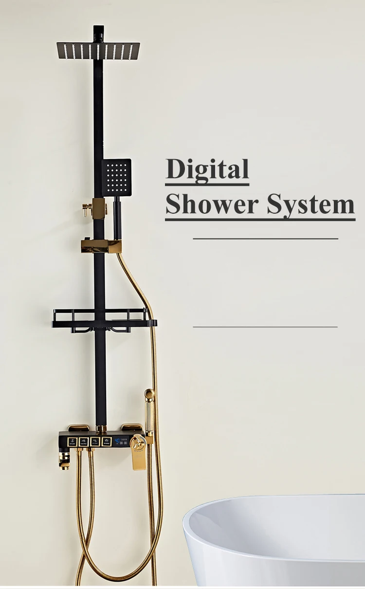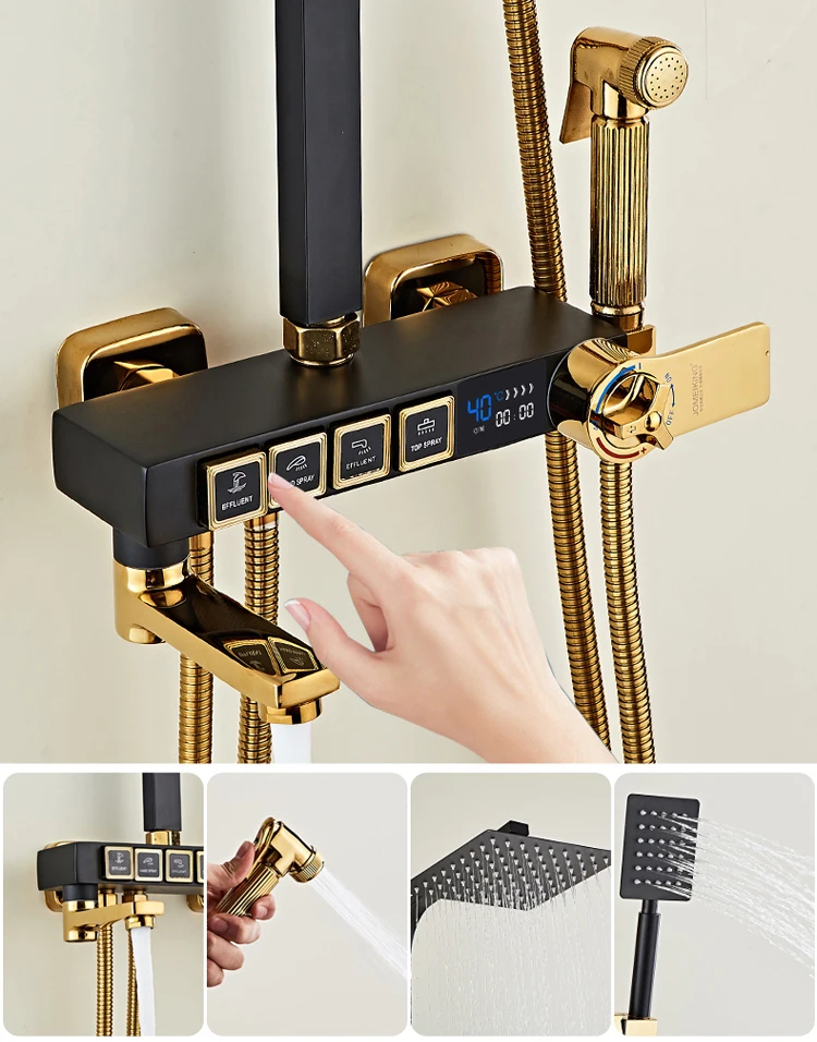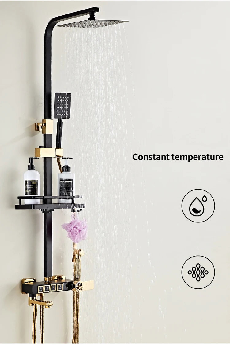 Multi-Functional Shower Experience: With a thermostatic faucet and multiple spray patterns (rain, jet, and massage), this shower system provides an unparalleled showering experience, allowing users to customize their water temperature and pressure to their liking.