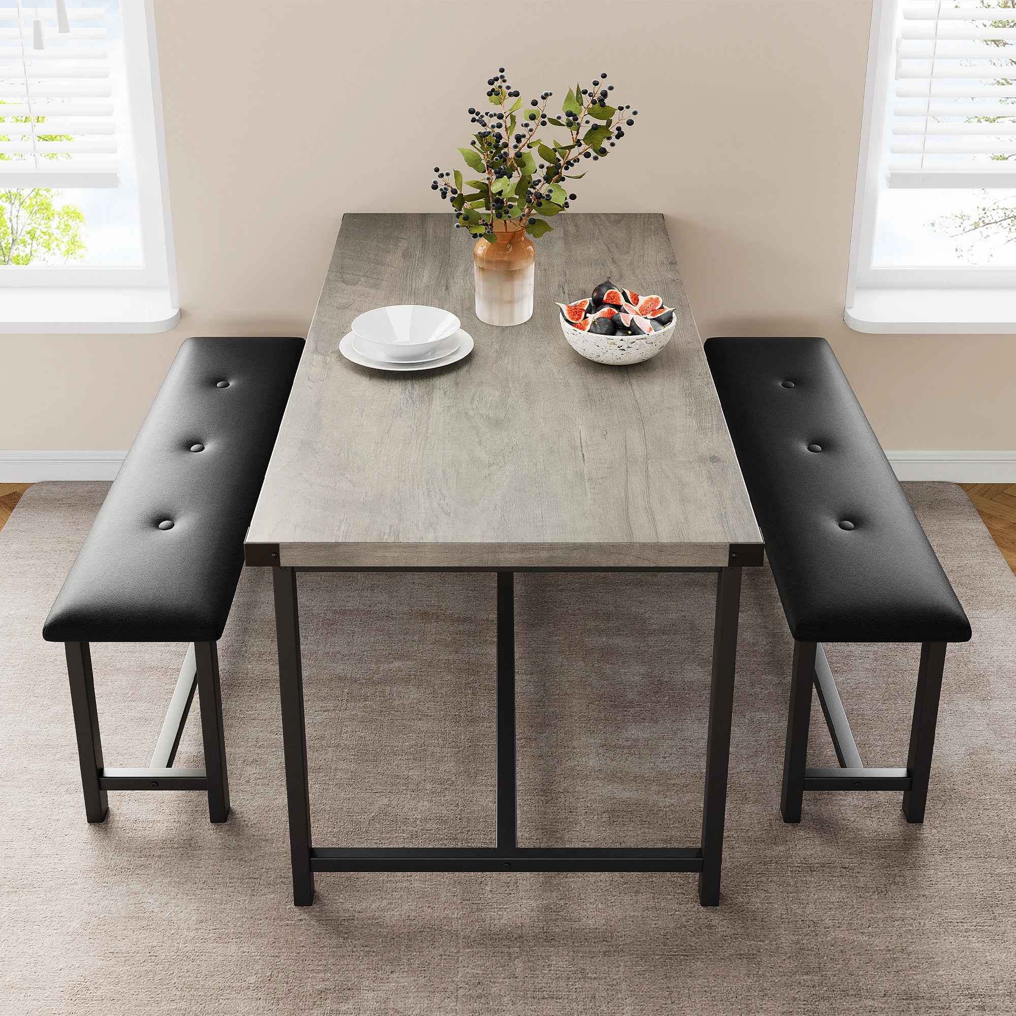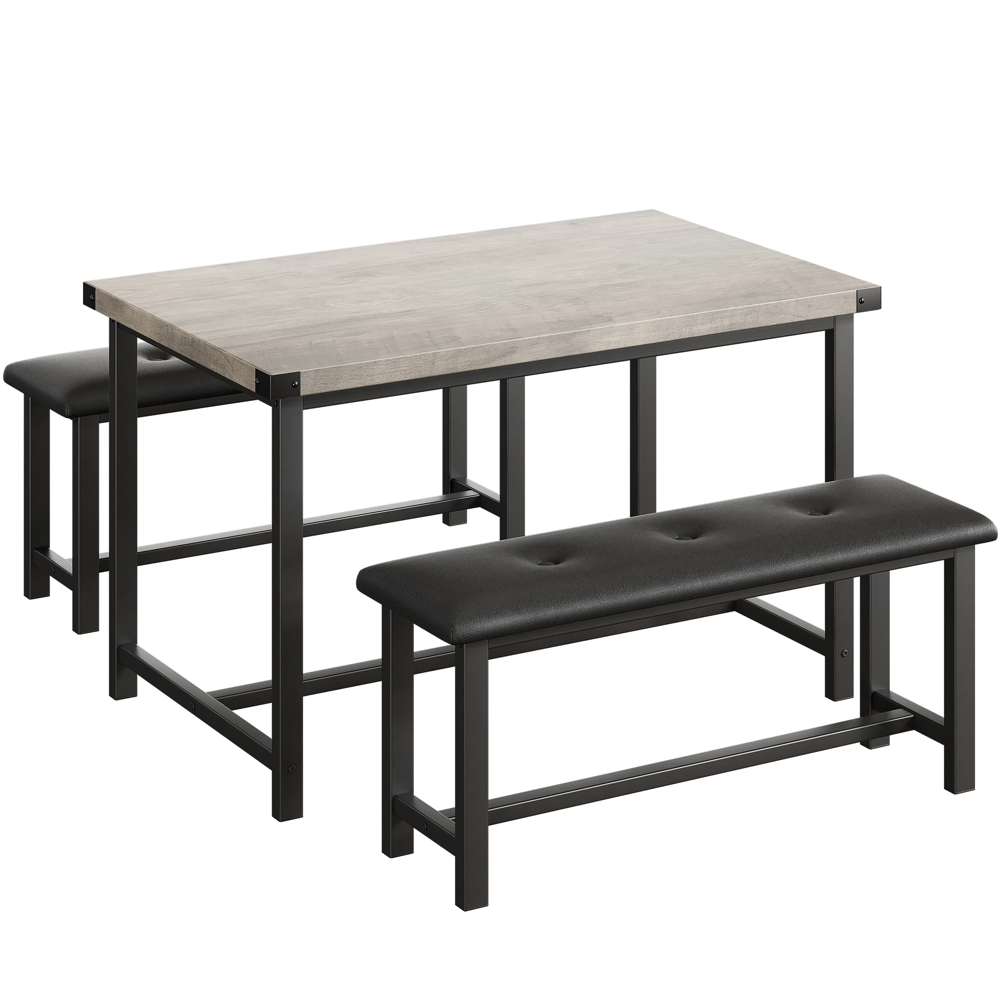 Product Overview:Introducing the Dining Table Set for 4, a perfect blend of style and functionality designed for small spaces such as kitchens, apartments, or even commercial venues. This rustic gray rectangular table set comes with upholstered benches, providing comfortable seating for up to four people, making it ideal for family meals or entertaining guests.