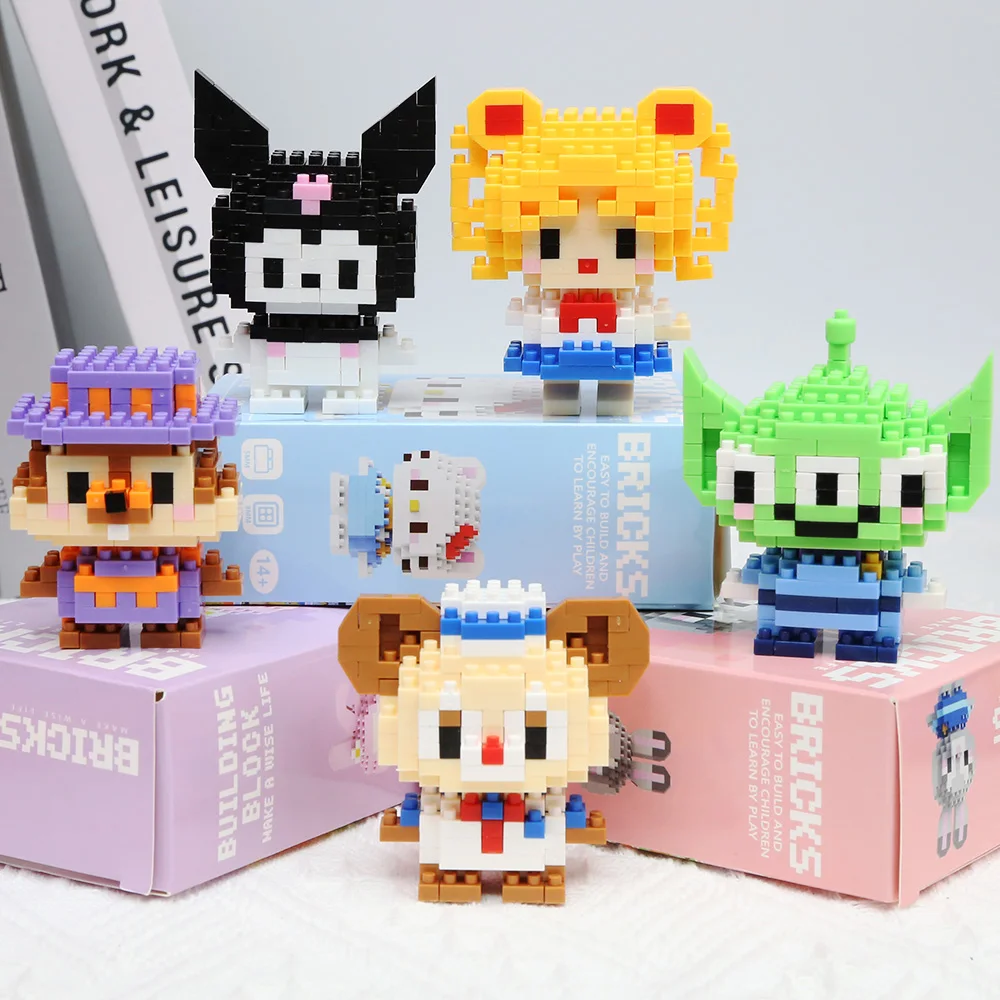 Disney Anime Princess Building Blocks Stitch Mickey Mouse mini Action toy Figures Blocks Toys Bricks Assemble Toys Kids Gifts