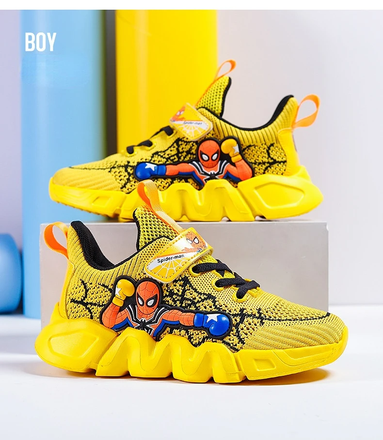 Disney Boys’ Casual Shoes Flying Woven MeshCartoon Running Sport Shoes Children’s Red Yellow Shoes Sneakers Size 26-37