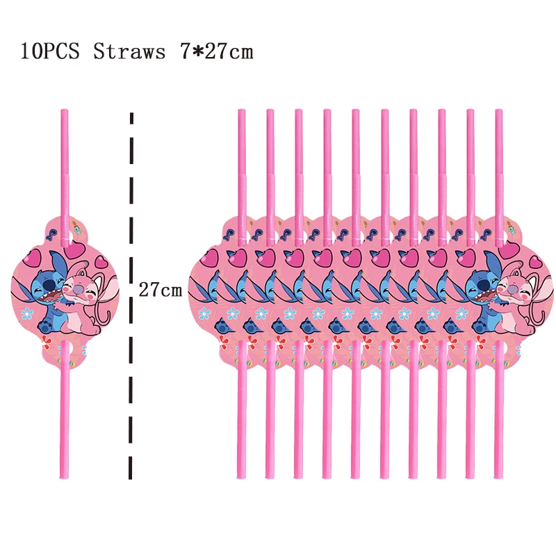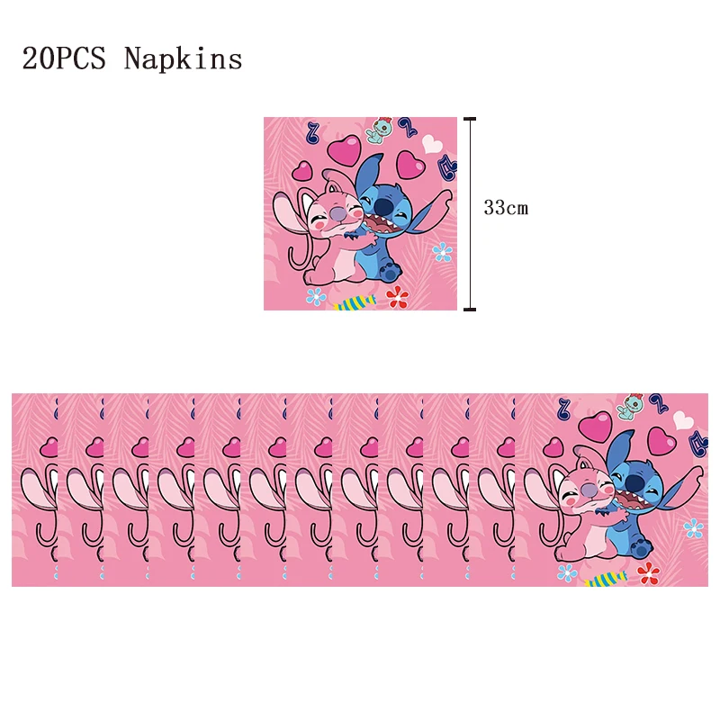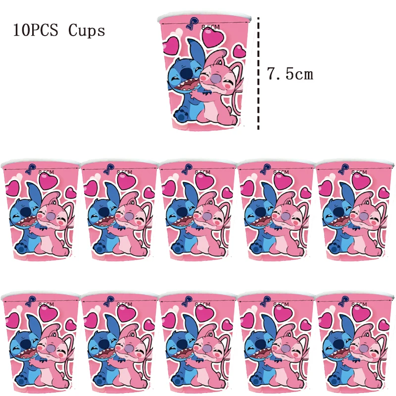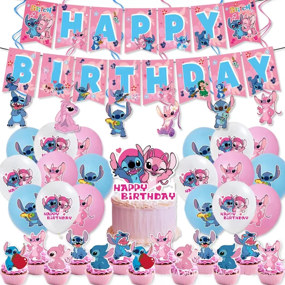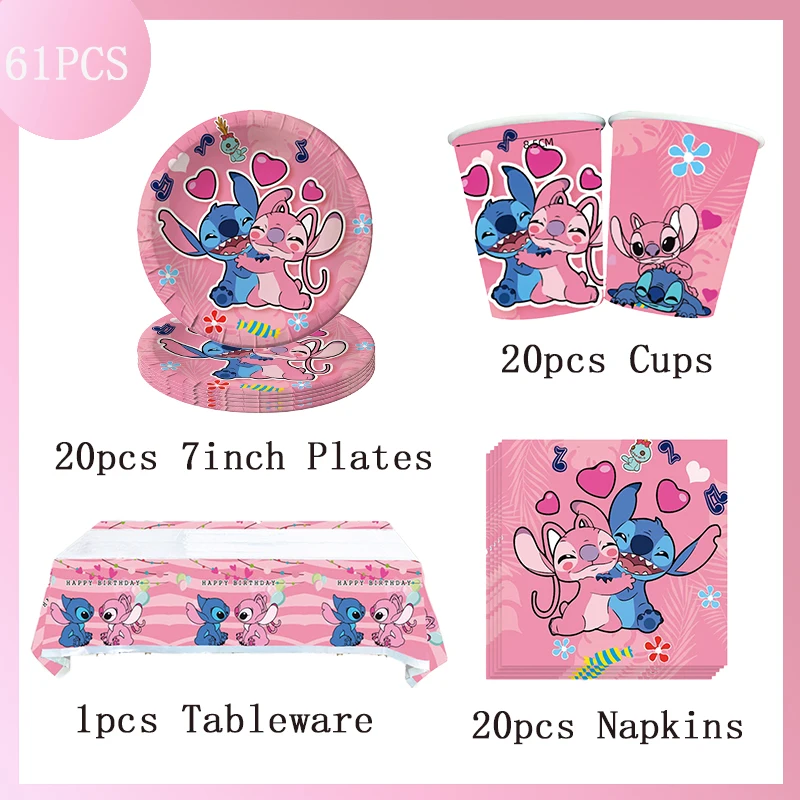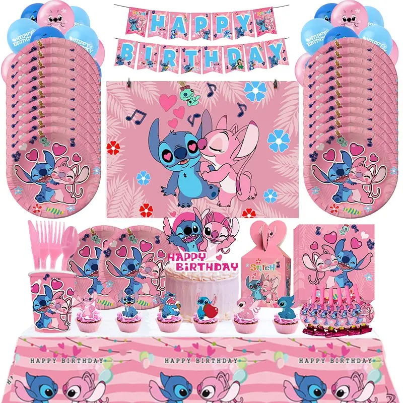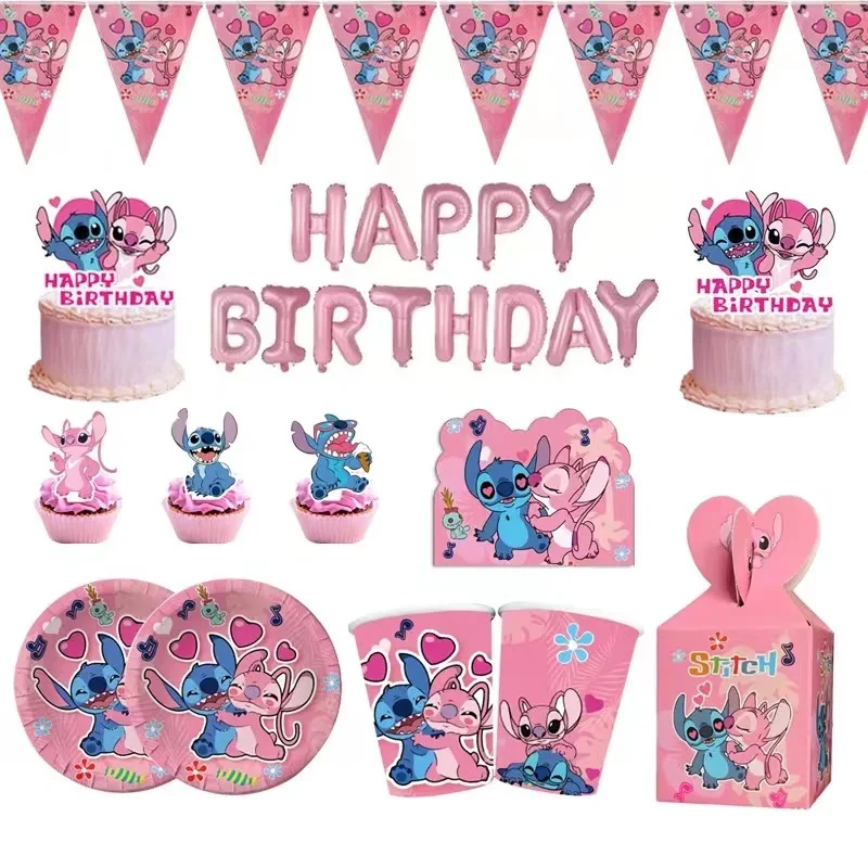 Disney Pink Stitch Birthday Party Decoration Lilo And Stitch Theme Tableware Angel Balloon Plates Cups Supplies For Kids Girls