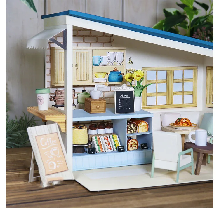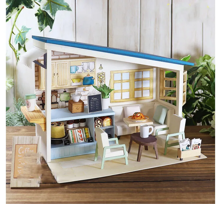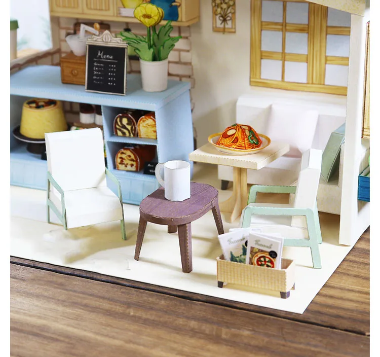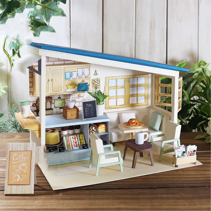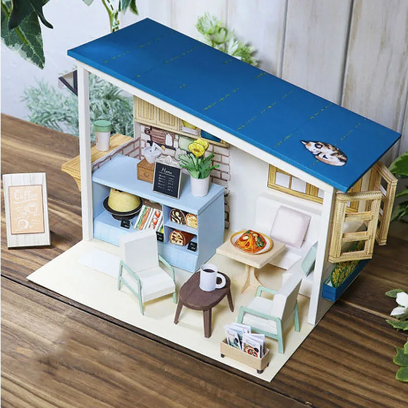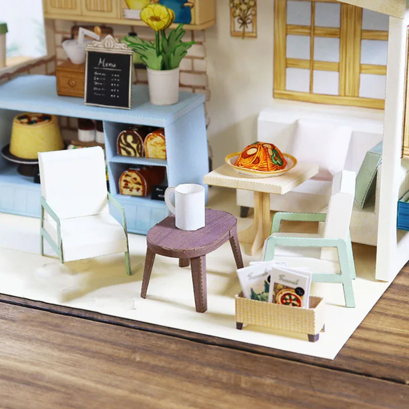DIY Dollhouse Casa Miniature Furniture Kit Coffee Shop Paper Model Doll Houses Assemble Toy for Children Christmas Gifts