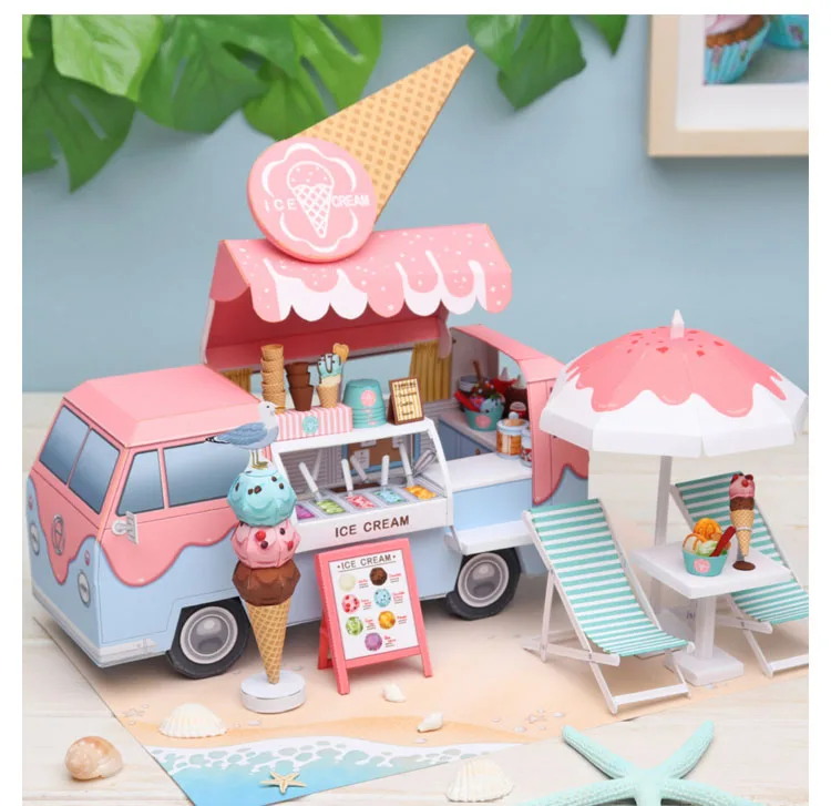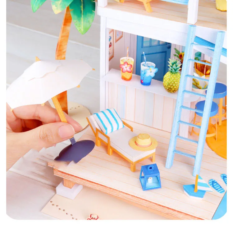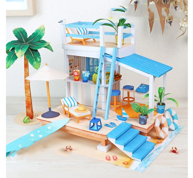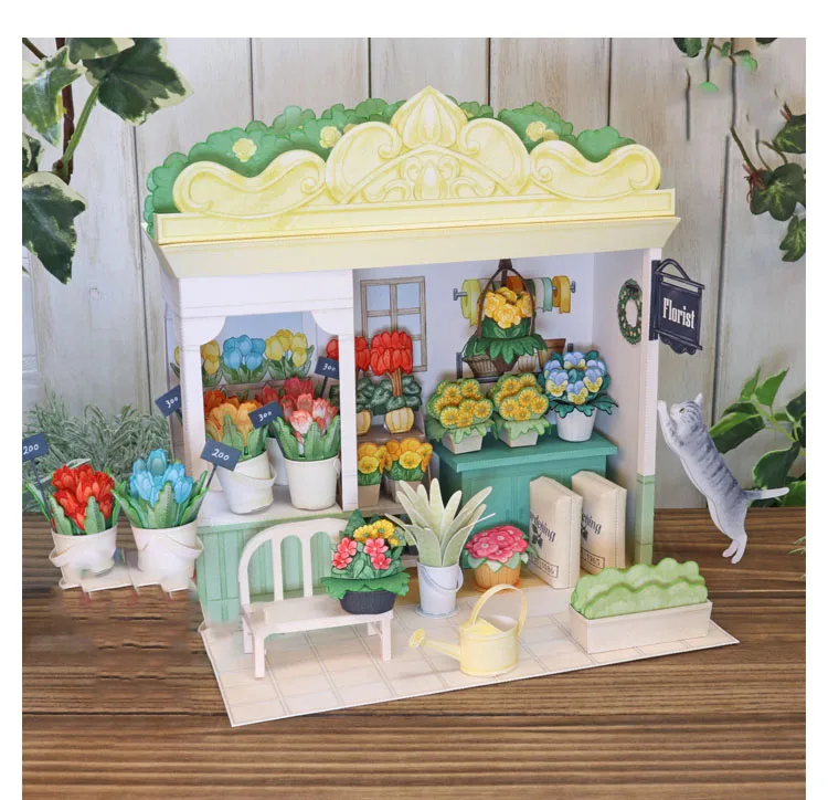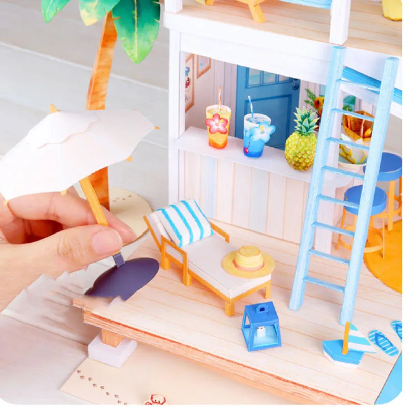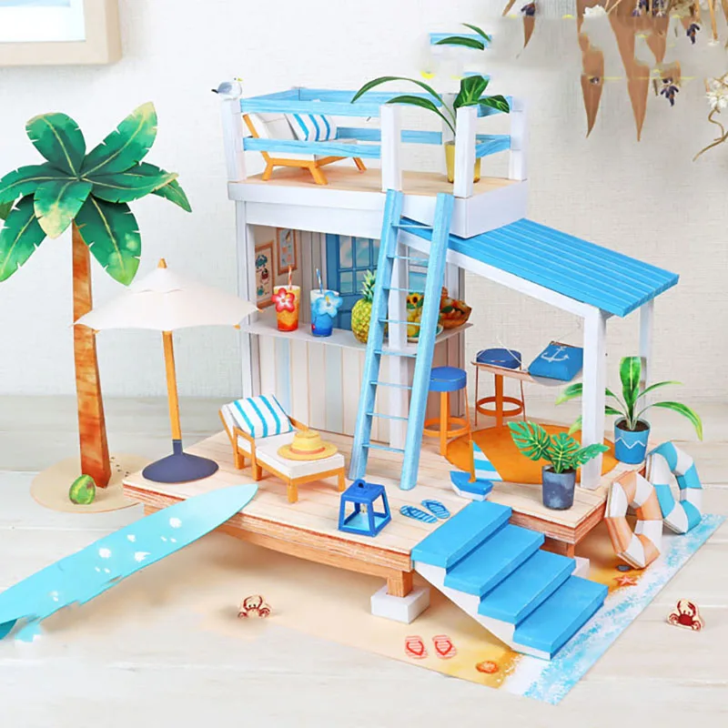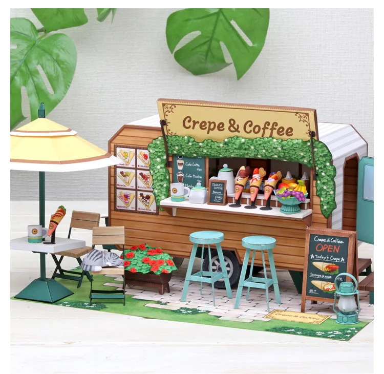 DIY Dollhouse Casa Miniature Furniture Kit Coffee Shop Paper Model Doll Houses Assemble Toy for Children Christmas Gifts