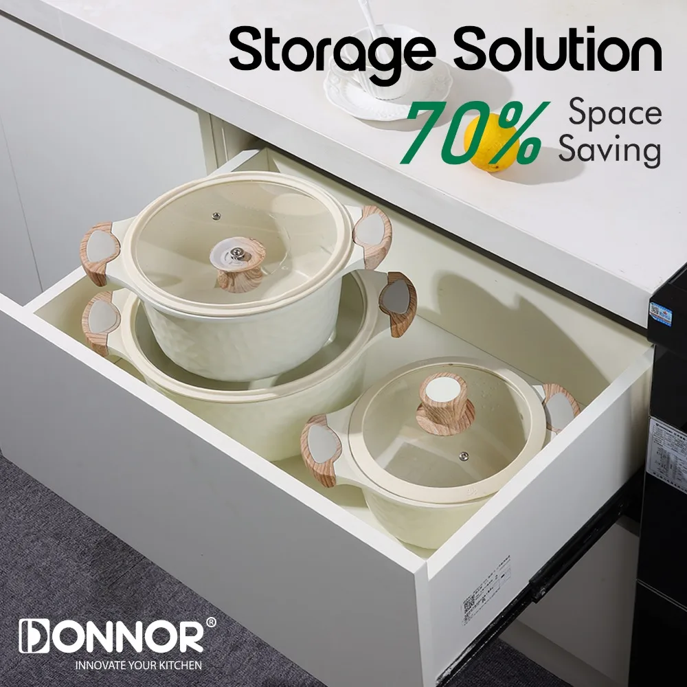 Donnor 10Pcs Pots and Pans Set Nonstick Cookware Set Kitchen Cooking Set Chef Pot with Pan Protectors Dishwasher Safe