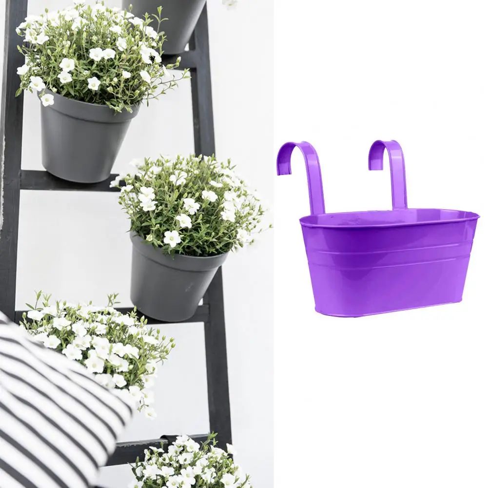 Double Hook Flower Pot Detachable Metal Hanging Planter Fence Buckets Home Fence Balcony Plant Garden Decorations Holder