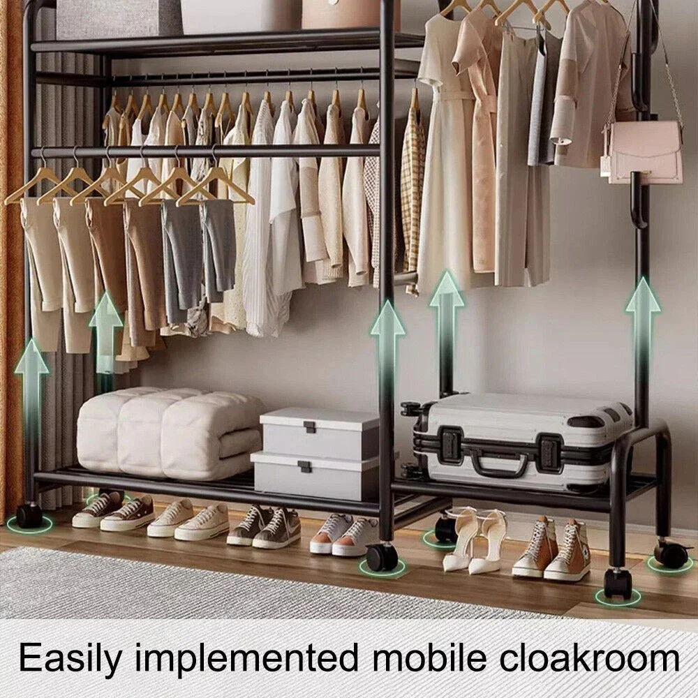 Bottom hexagonal support, Three rows of clothes hangers, 3 layers of storage racks