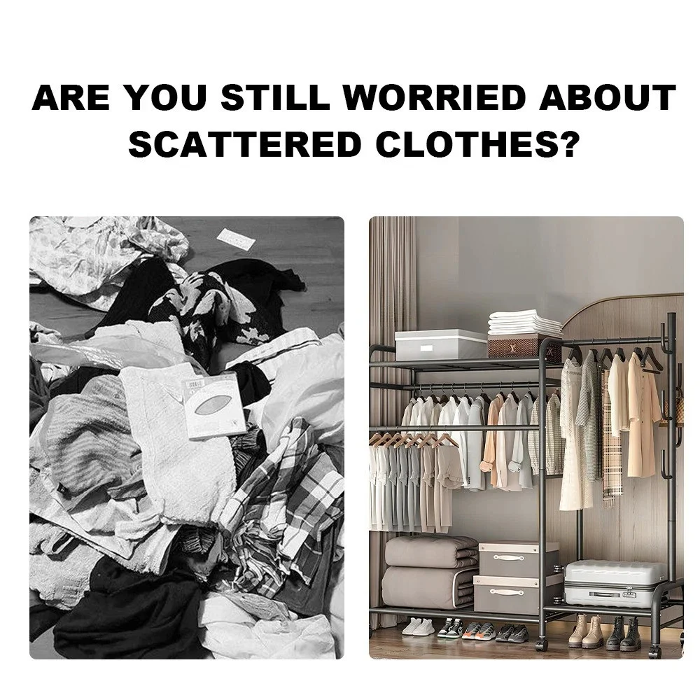 Simple style: This clothes hanger is made of high-quality metal pipes, with modern design, excellent performance, exquisite appearance, and simple style suitable for different home decoration styles.