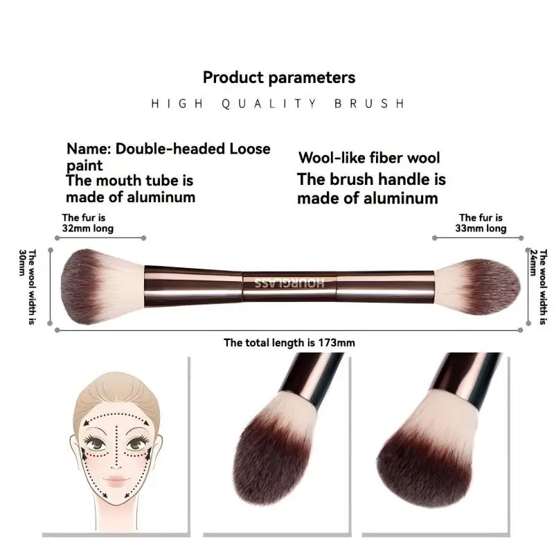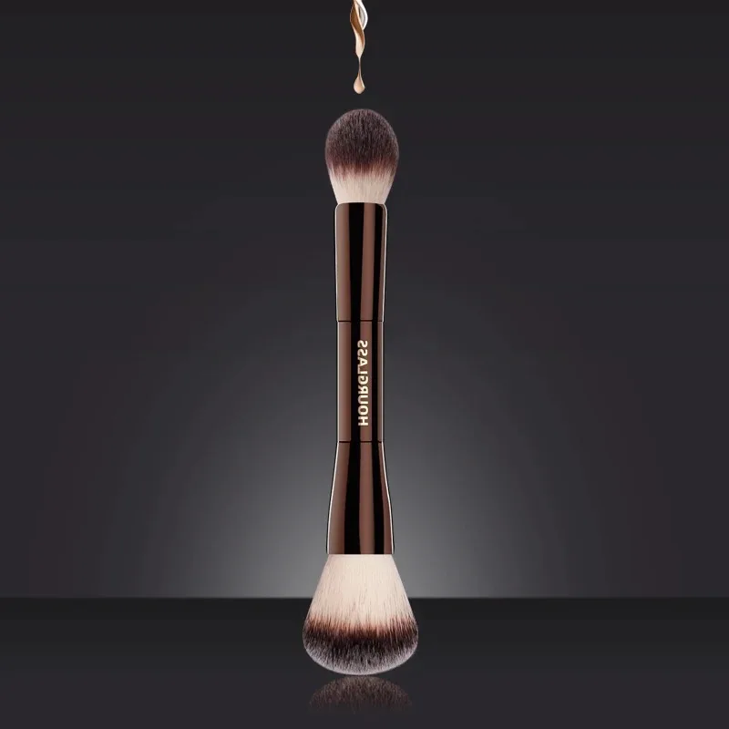 Dual-ended makeup brush professional, 2-in-1 foundation and blush brush, vegan luxury makeup tools, Japanese synthetic fiber brush, professional makeup artist kit, travel-friendly cosmetic tools, hypoallergenic makeup brush, sustainable beauty tools, magnetic closure brush, high-density bristle brush.