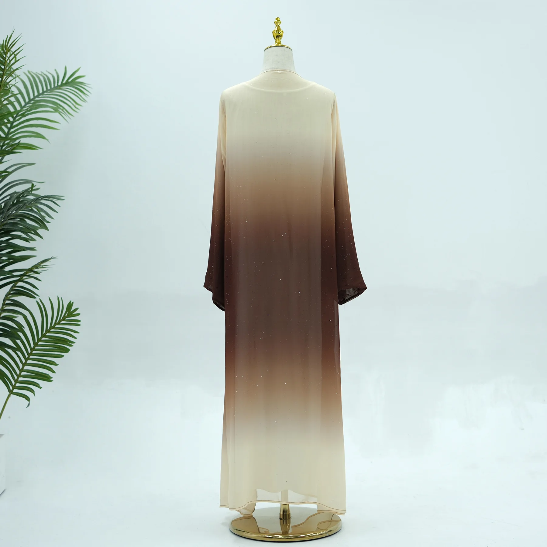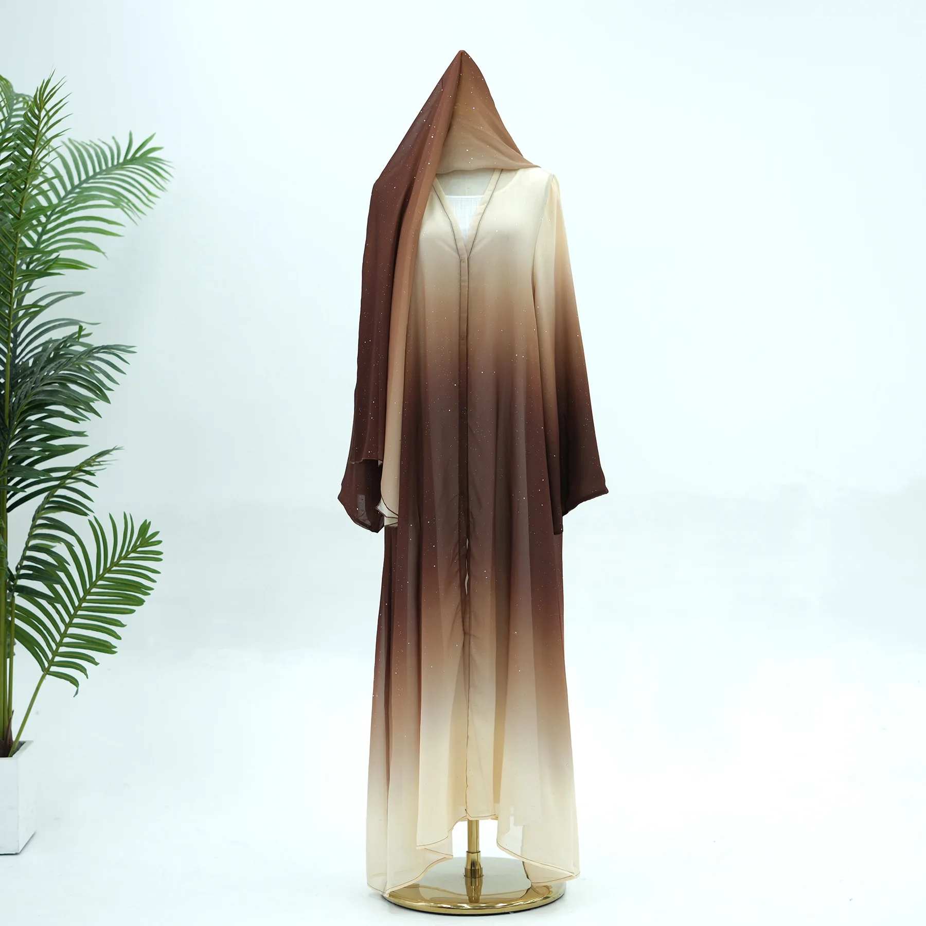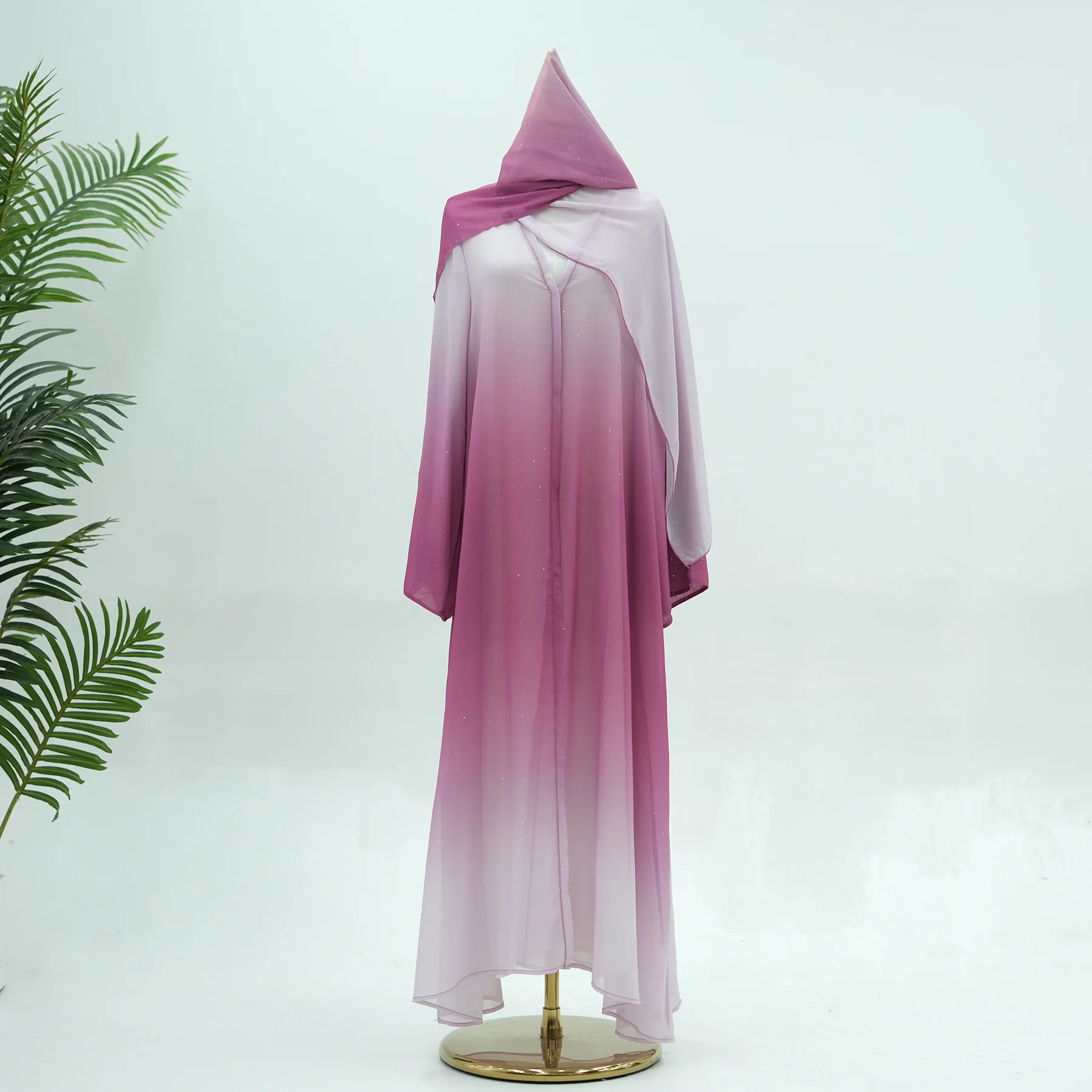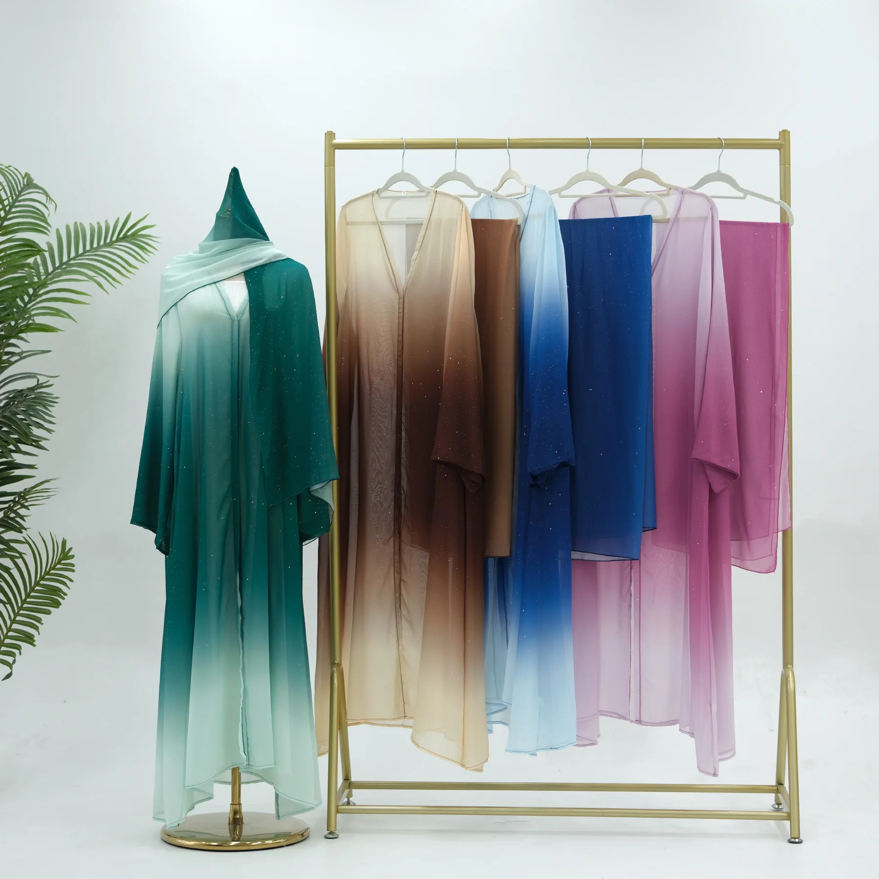 Dubai Luxury Gradient Color Abaya Open Kimono Muslim Dresses with Scarf Modest Robe Khimar Islamic Kebaya Caftan Jalabiya Kaftan