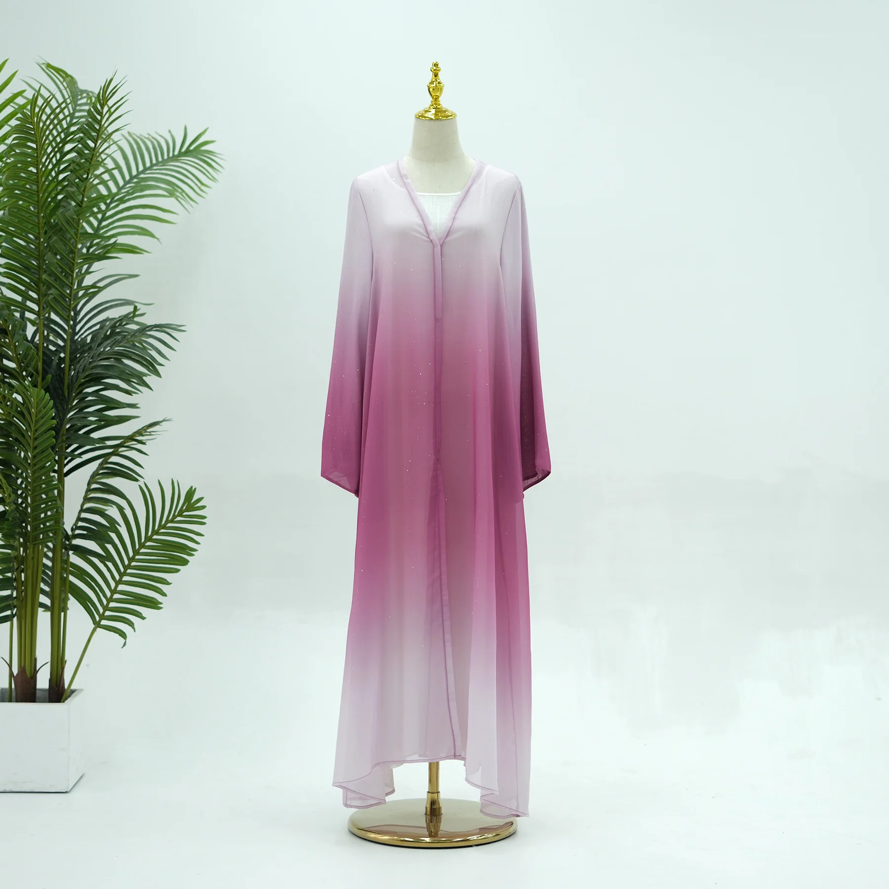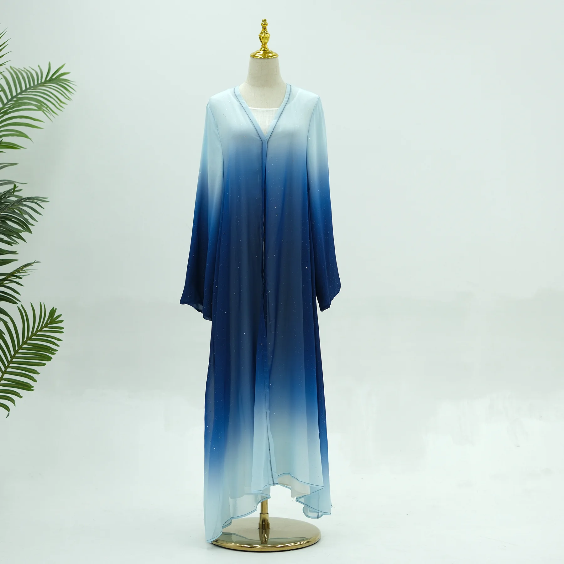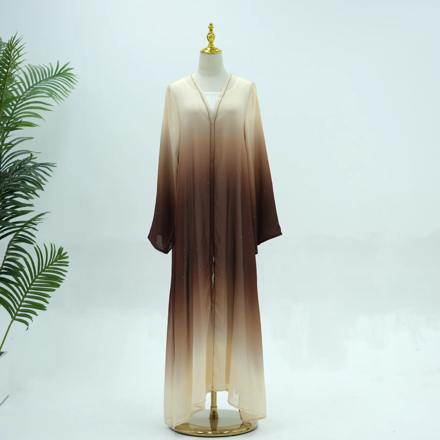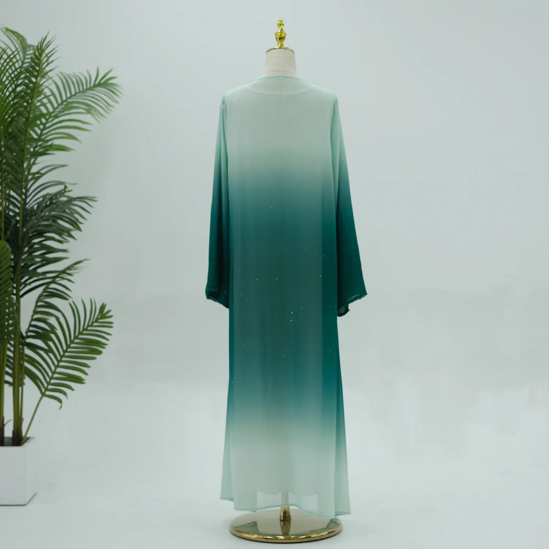 Dubai Luxury Gradient Color Abaya Open Kimono Muslim Dresses with Scarf Modest Robe Khimar Islamic Kebaya Caftan Jalabiya Kaftan