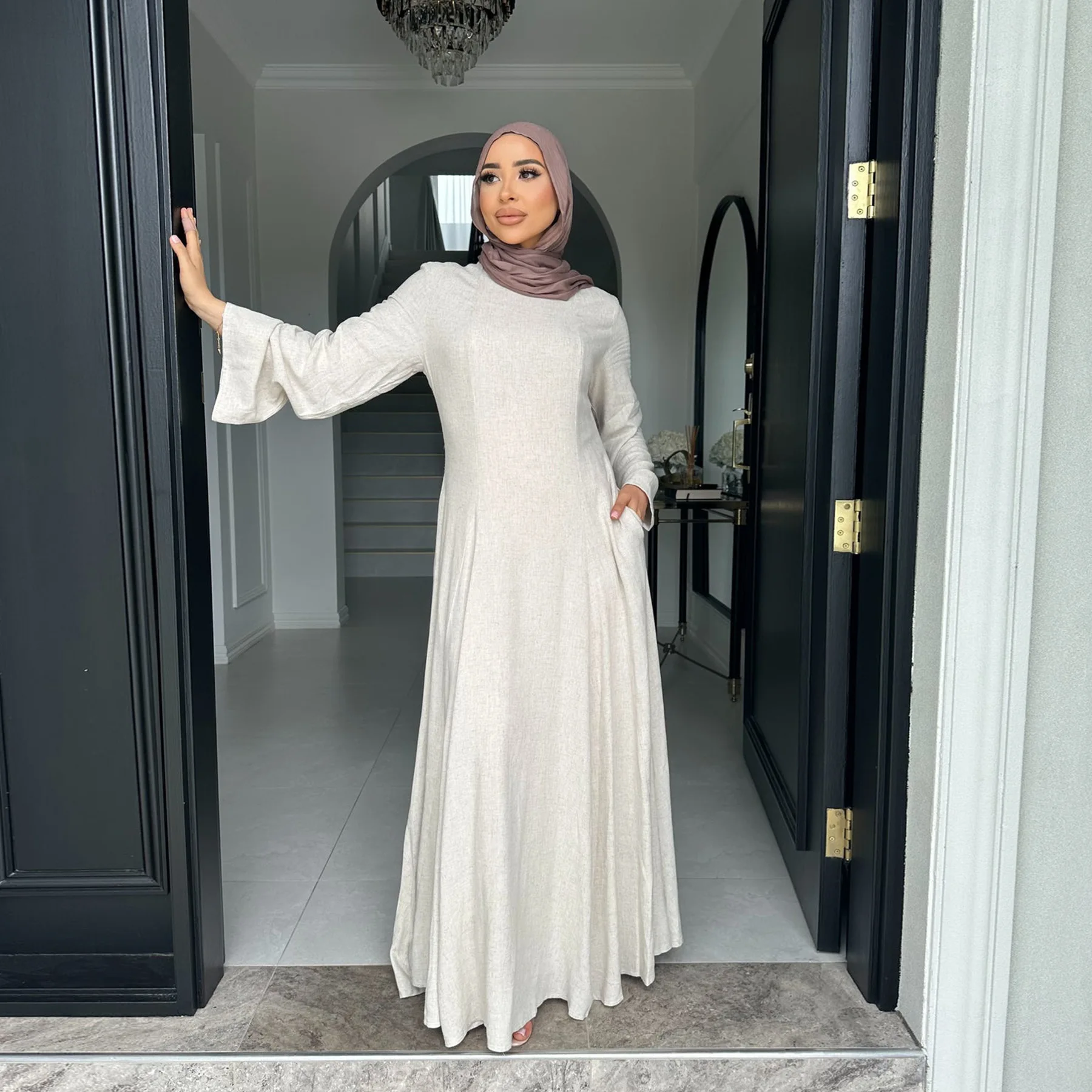 Eid Abayas for Women Muslim Dress Dubai Turkey Solid Color Swing Lace Up Robe Kebaya Ramadan Islam Clothing Arabic Robe Caftan