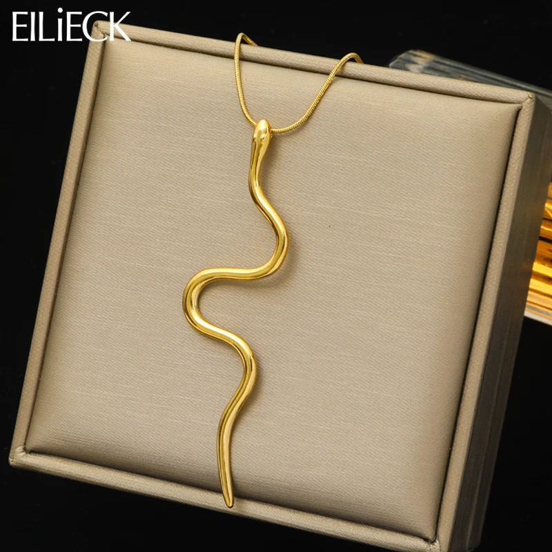 EILIECK 316L Stainless Steel Creative Gold Color Snake Pendant Necklace For Women Girl New Design Waterproof Jewelry Gift Party