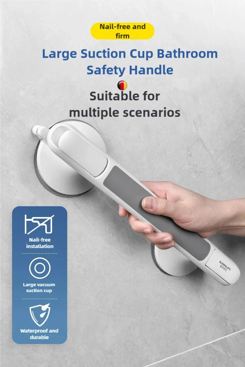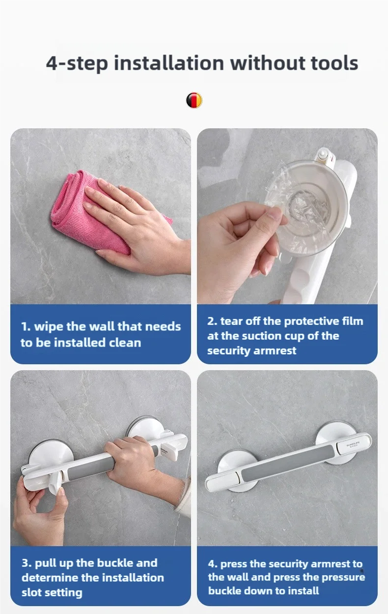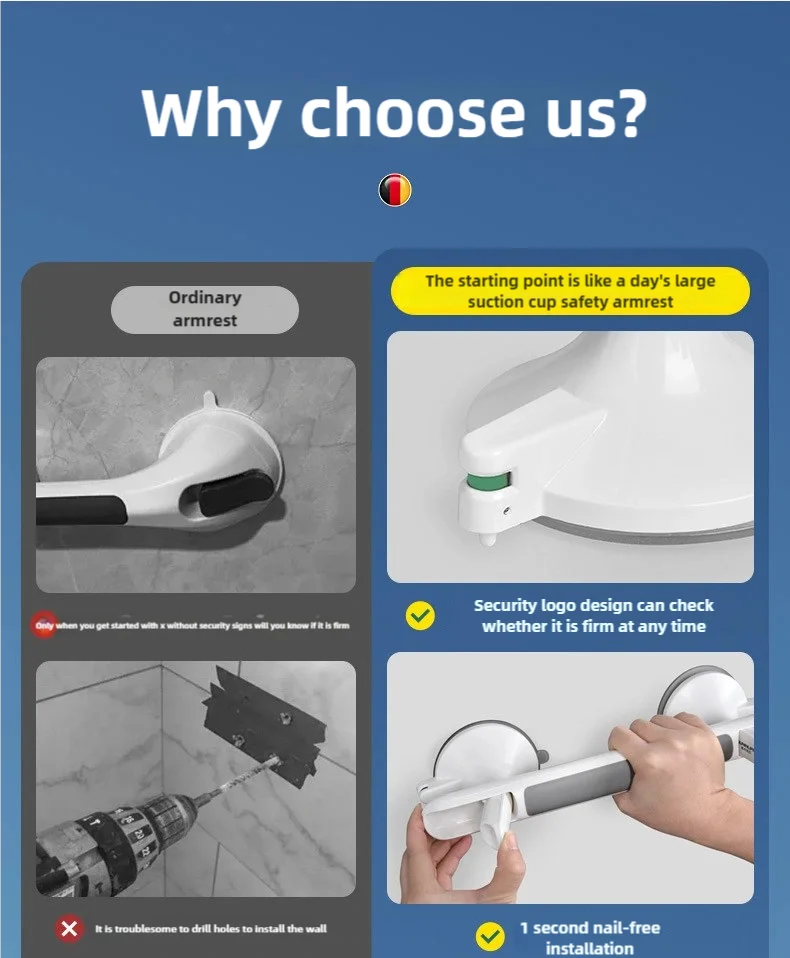 Elderly Shower Safety Armrest, Toilet Anti Fall and Anti Slip Railing, No Punching Suction Cup Required Bathroom Handle