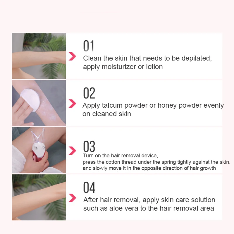 1. Cotton thread material without any chemical drugs, wax or knife used, no irritation to your skin
