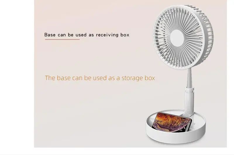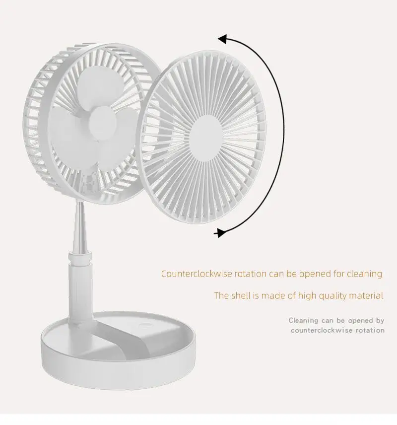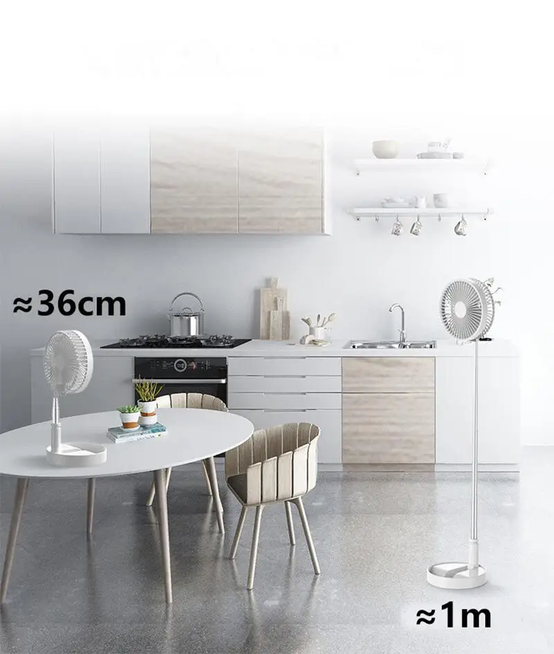 1. Unique retractable and foldable design are easy to carry. It can be folded and extended as a desktop fan and can be extended up to 100cm as a vertical fan.