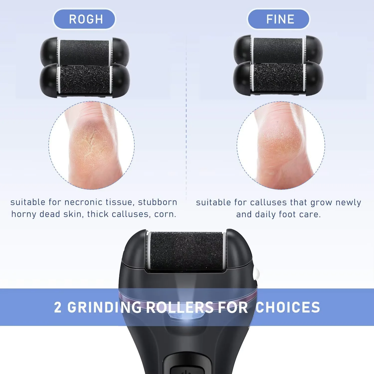 1.【3 Replacing the grinding heads】 3 different quartz sand grinding heads. The coarse grinding head can remove stubborn dead skin, the medium grinding head can remove rough dead skin, and the fine grinding head can be used for daily care. You can choose a suitable grinding head for your skin, get rid of dead skin and hard cracked skin on your feet, and restore delicate and smooth skin on your feet.