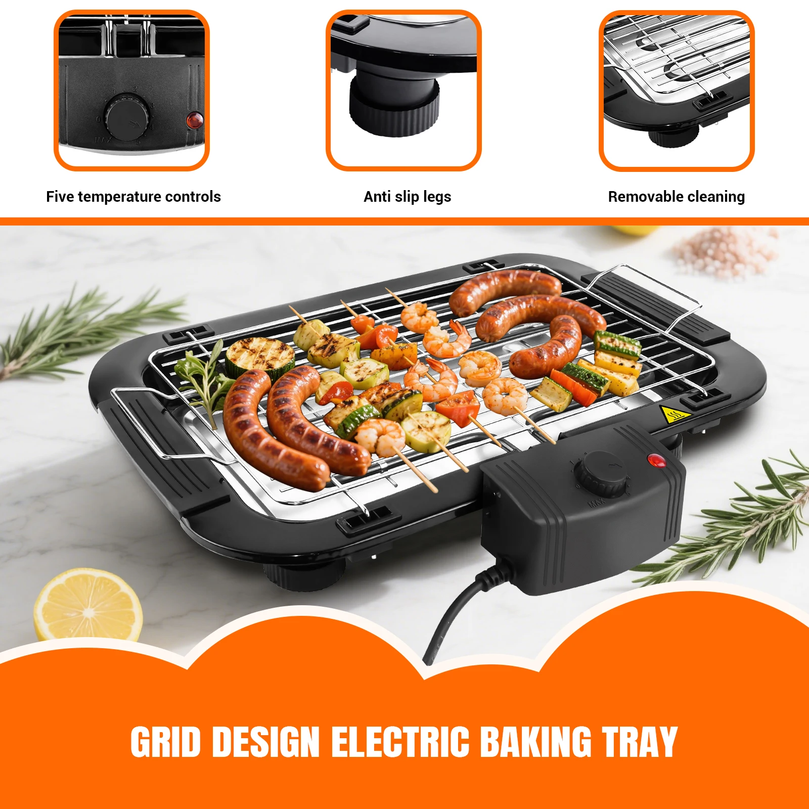 ⭐【Rapid-Heat Electric Grill】– This tabletop grill features an embedded U-shaped heating element for faster, more even heating and consistent temperature maintenance. Whether you’re grilling burgers, red meat, sausages, fish, seafood or sandwiches, enjoy your meal in no time.