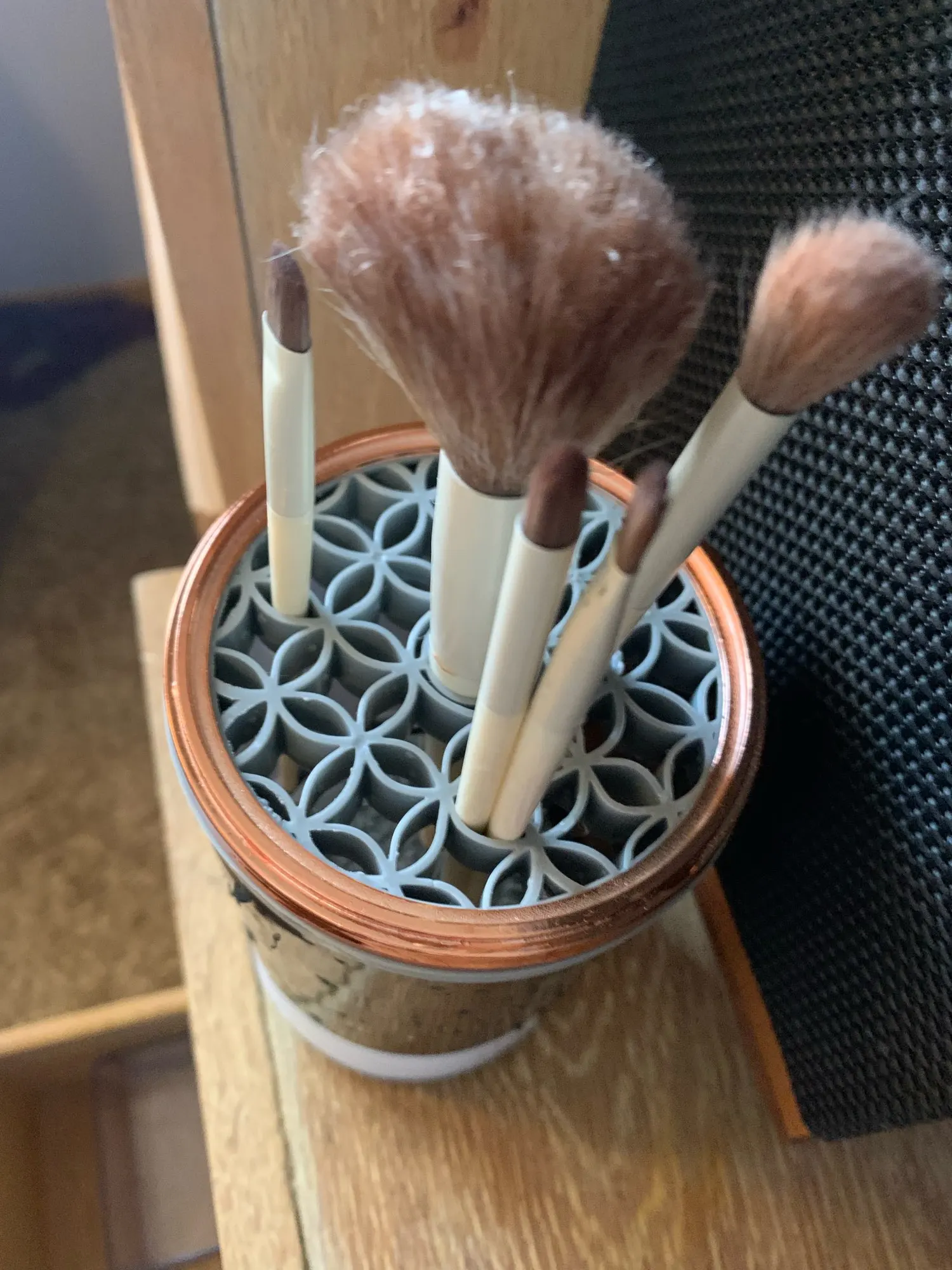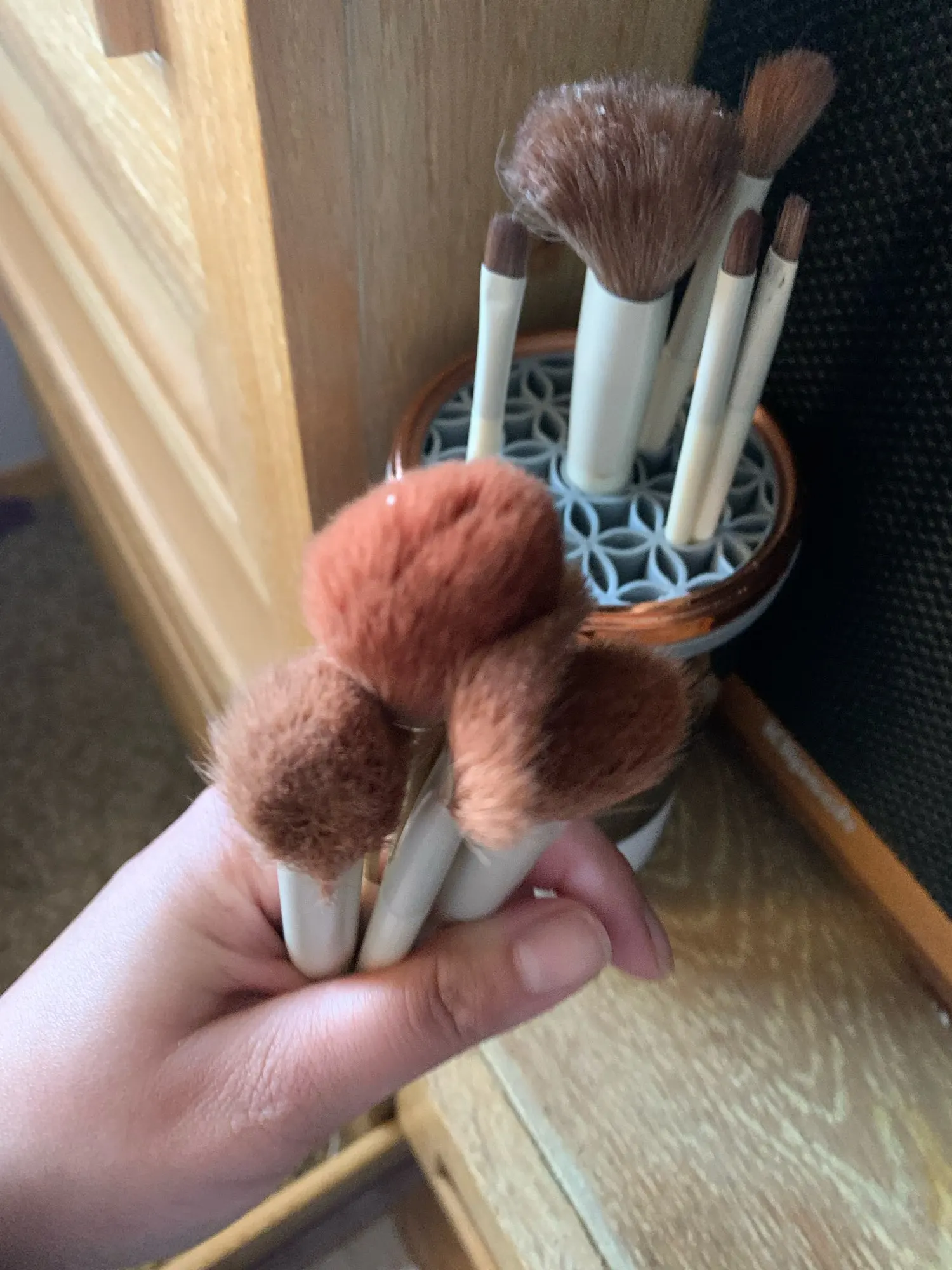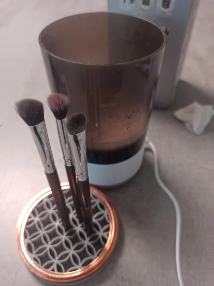 Convenient cleaning machine. Previously, I had to scrub the brushes until my hands hurt, but now just one press is enough. For cleaning brushes with highly pigmented shadows, even if they are in powder form, it is necessary to first clean the inside of the machine manually. It's very convenient for drying and can be used as an organizer.