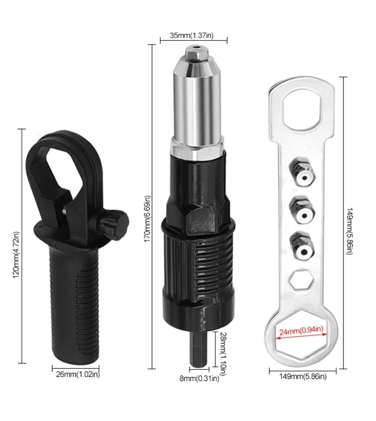 Electric Riveting Gun Adapter 2.4mm-4.8mm Rivet Nut Gun Drill Bit Nozzle Cordless Conversion Connector Power Tools