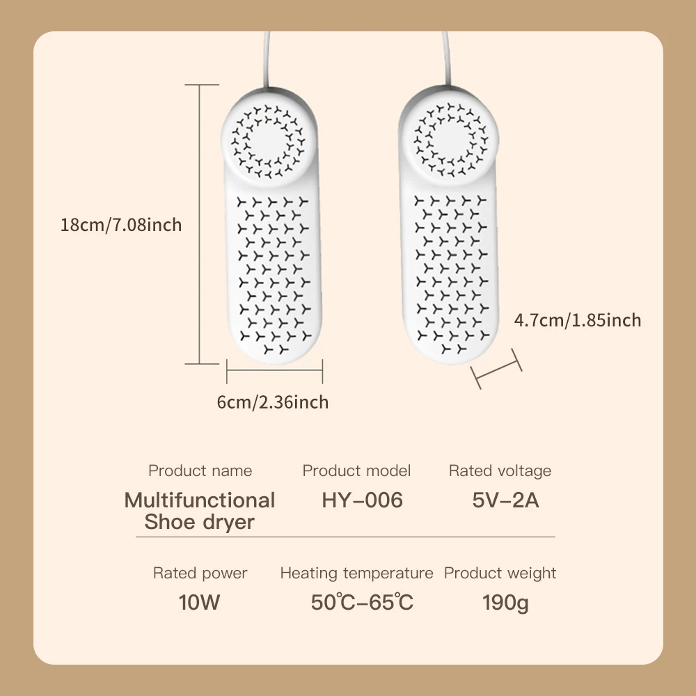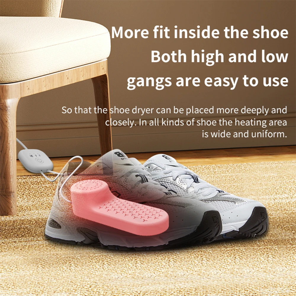 3. This shoe dryer can effectively remove moisture from shoes, eliminate odor caused by sweating after exercise, humid weather or cold temperatures, and inhibit the growth of microorganisms.