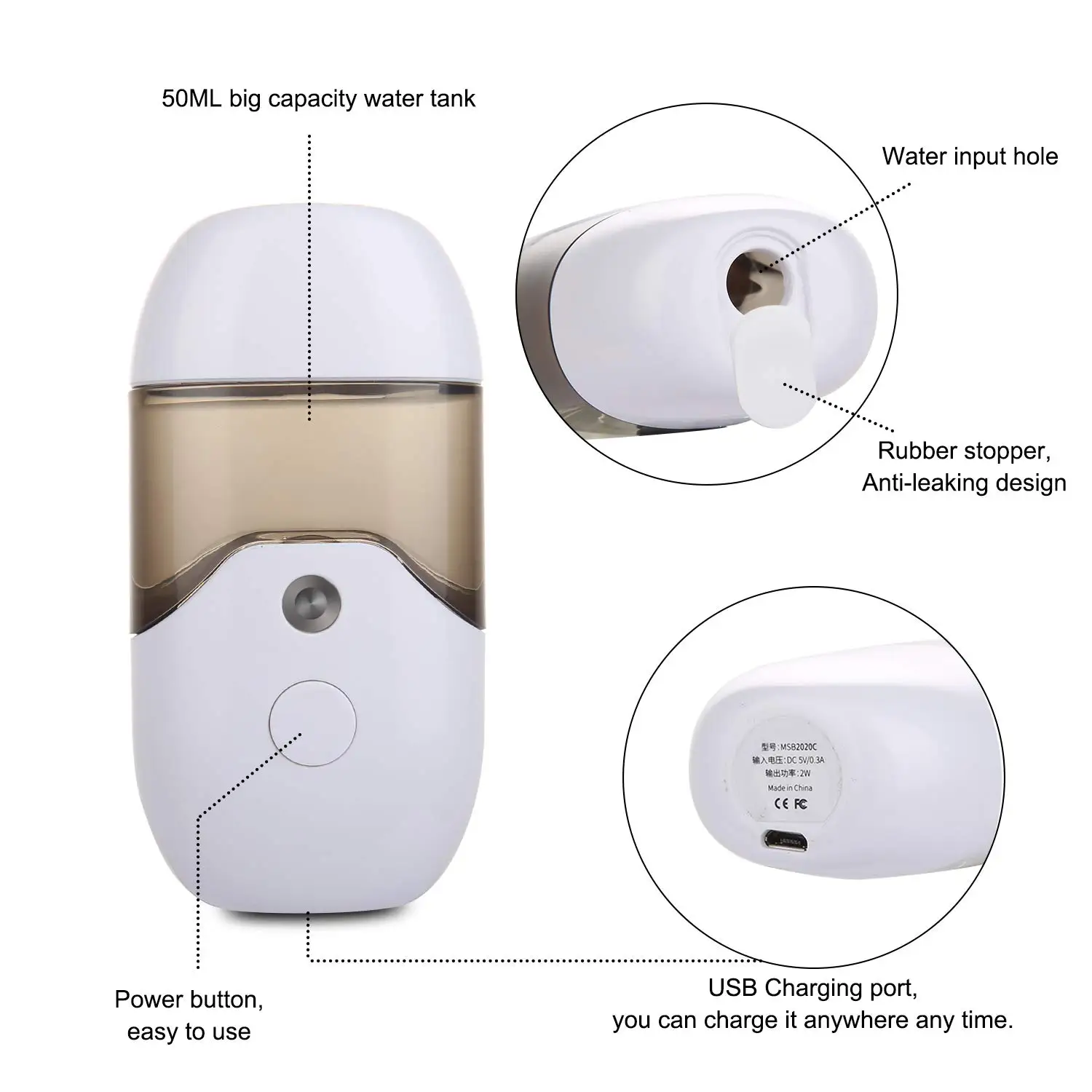Nano Facial Mister, Electronic Facial Steamer Handy Cool Mist Mist Sprayer, Moisturizing and Hydrating for Skin Care, Makeup, Eyelash Extensions