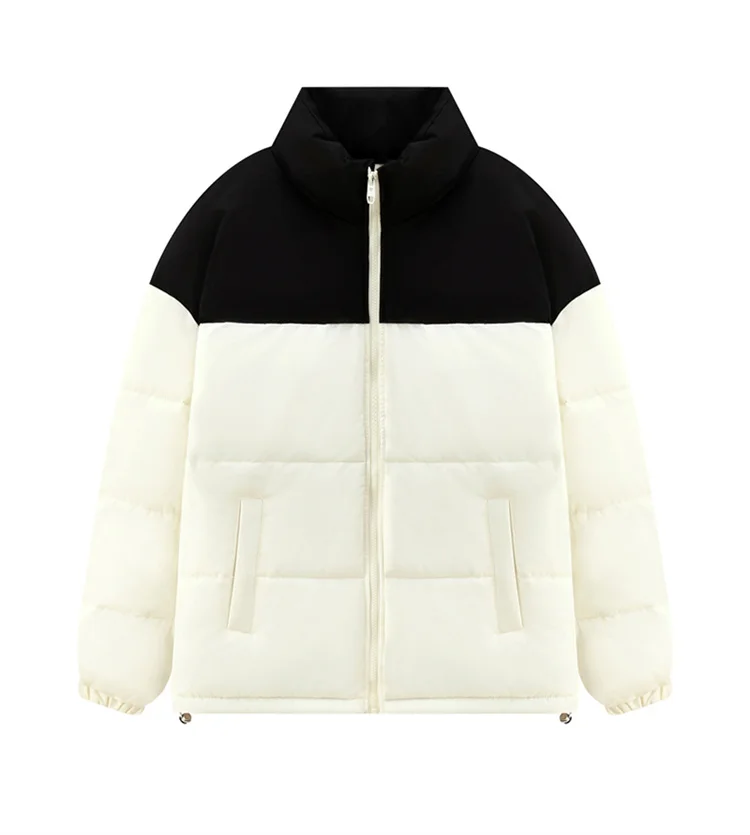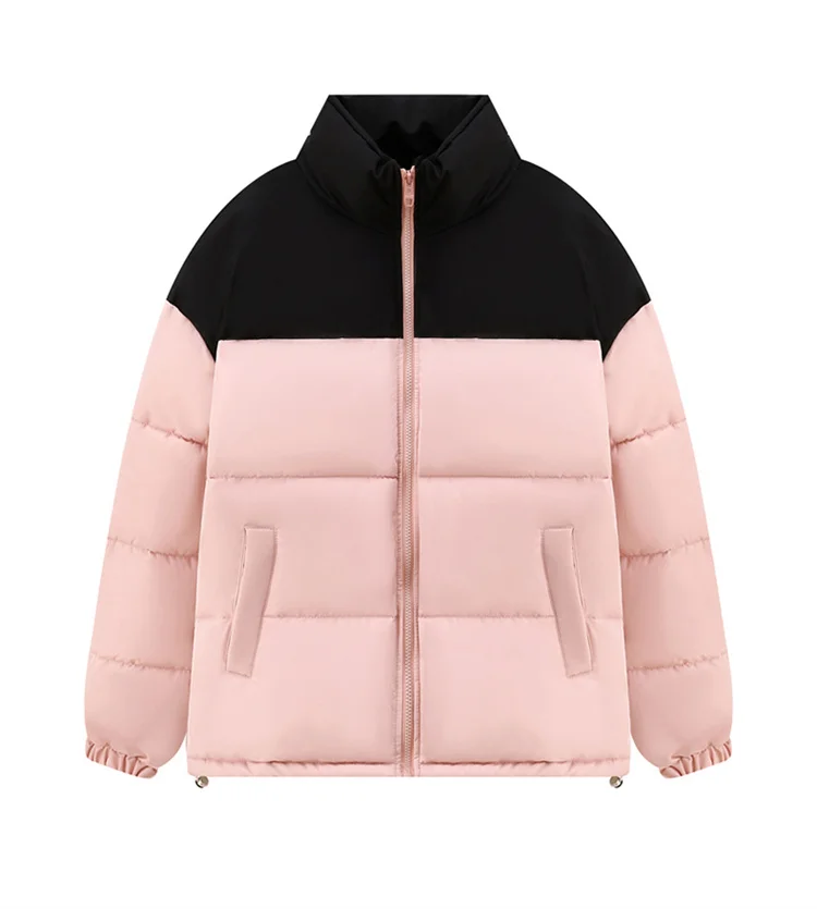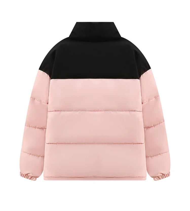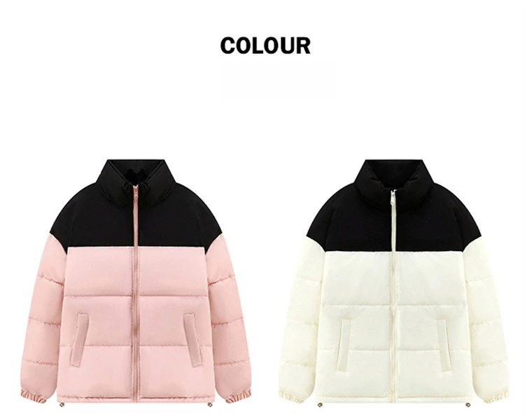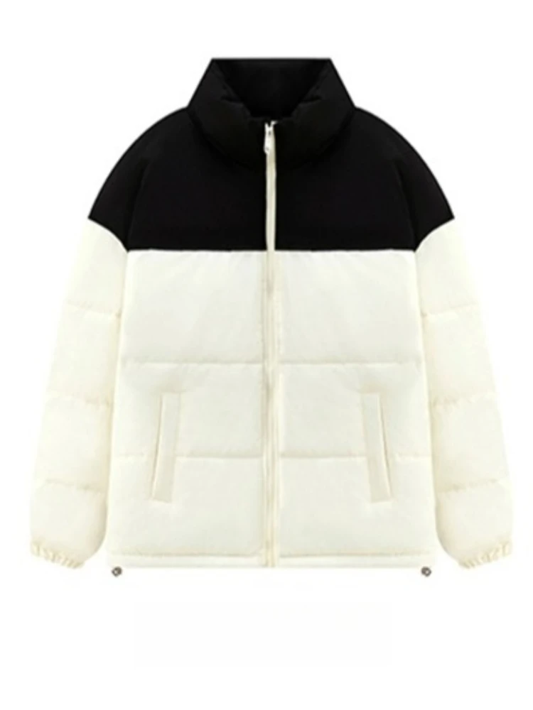 Elegant Loose Color Blocking Coats Winter New Warm Cotton Coat Trendy Windproof Parkas Fashion Zipper Pocket Design Short Jacket