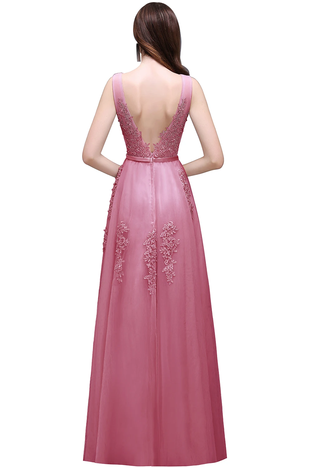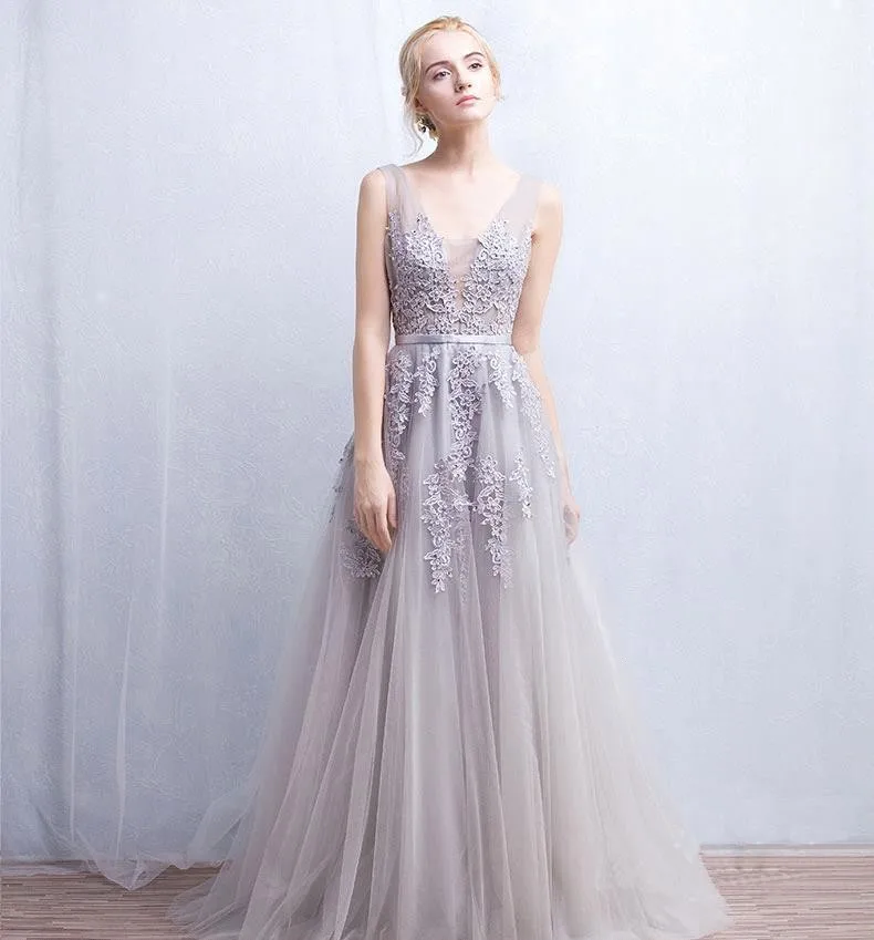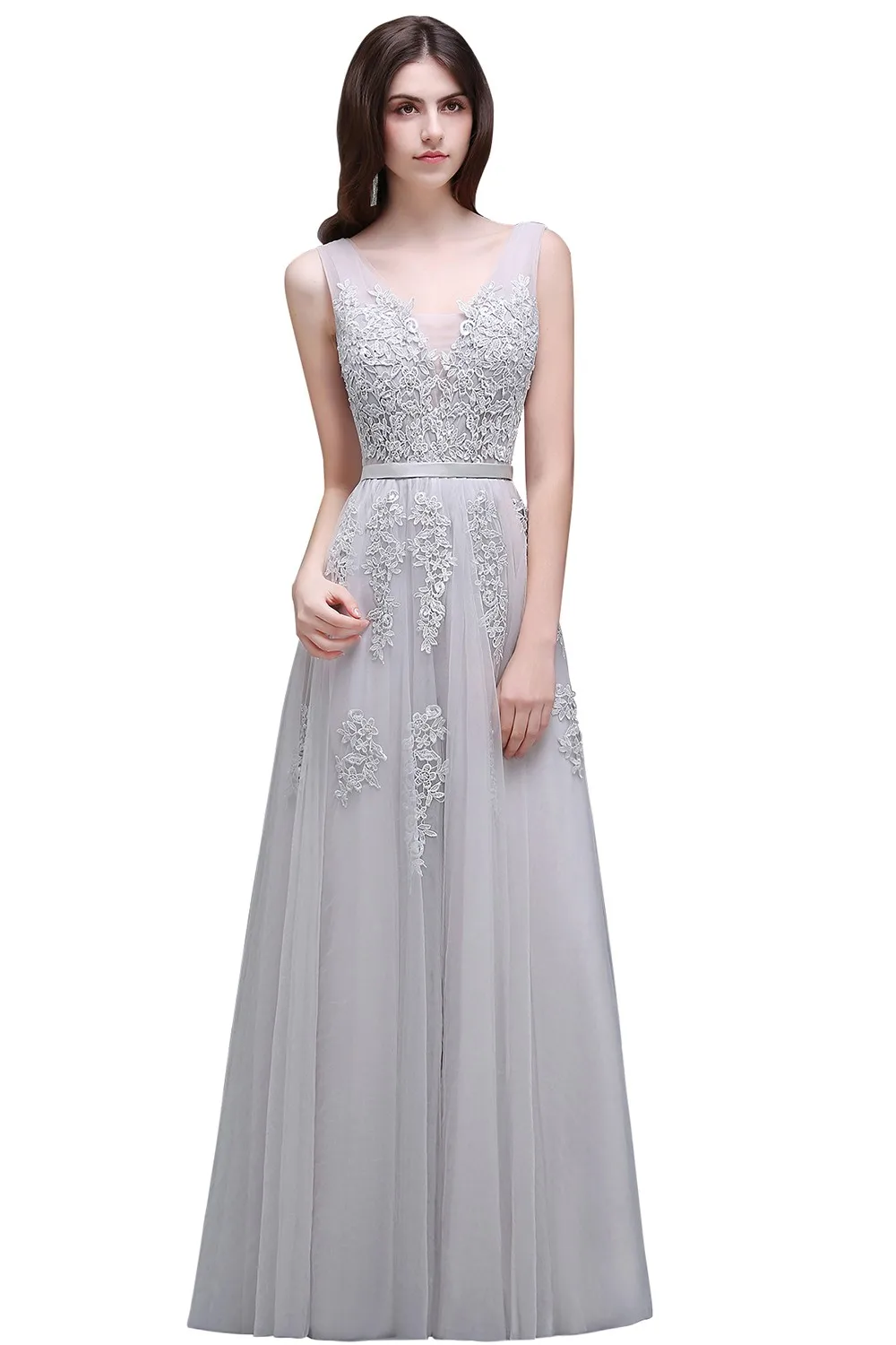 Elegant Tulle Sleeveless Silver Long Prom Dresses 2024 Applique V Neck Burgundy Evening Gowns Formal Party Vestido De Gala