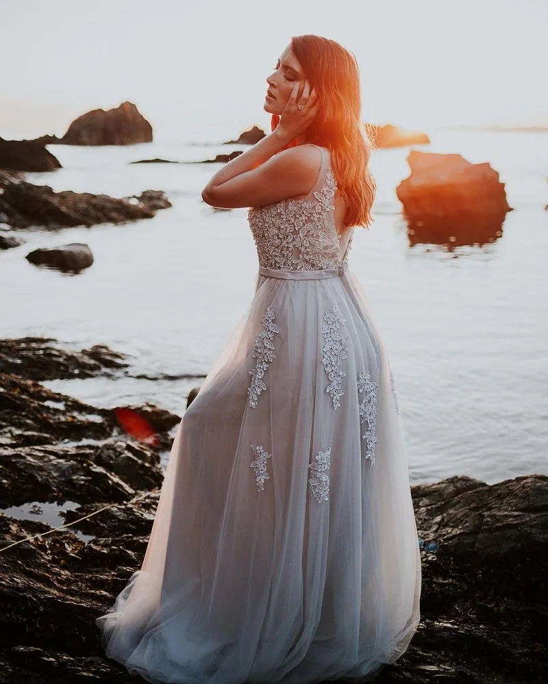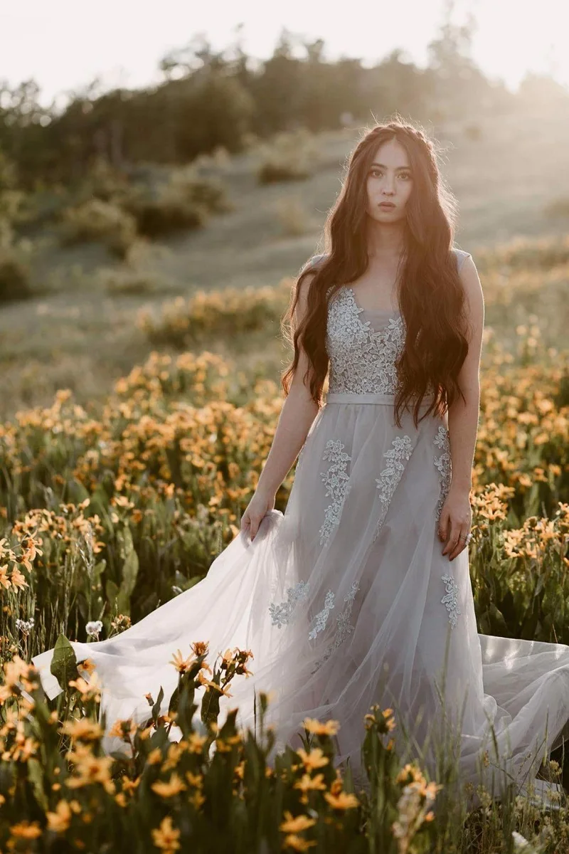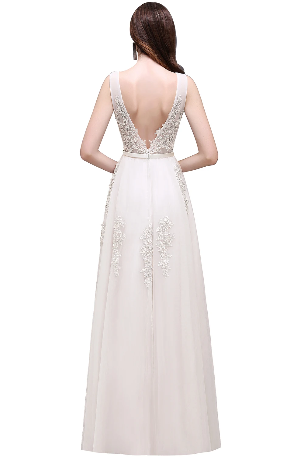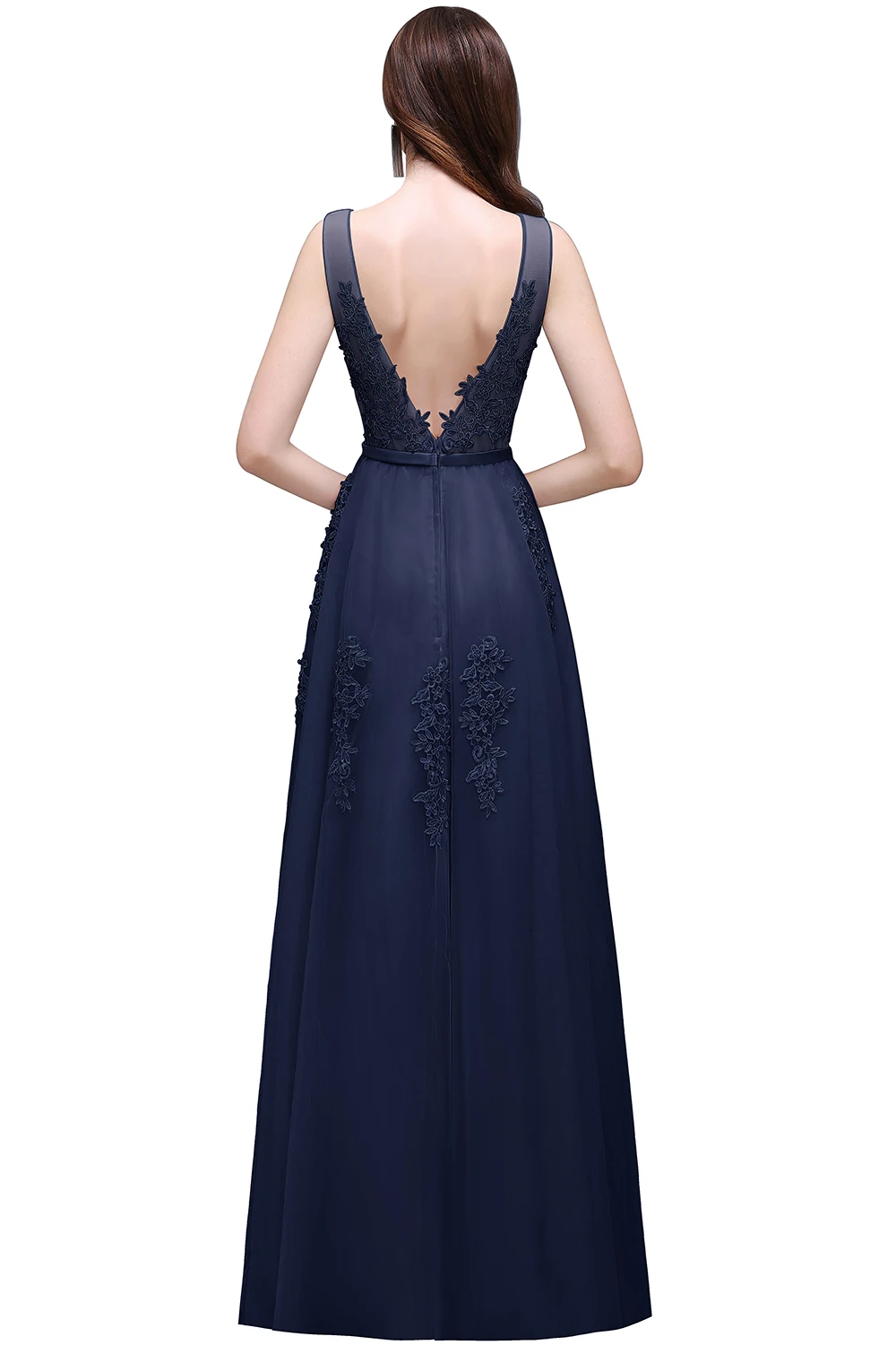 Elegant Tulle Sleeveless Silver Long Prom Dresses 2024 Applique V Neck Burgundy Evening Gowns Formal Party Vestido De Gala