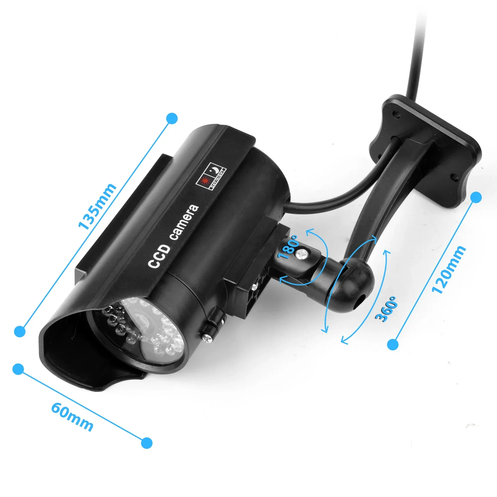 This ABS plastic bullet dummy camera with red flashing LED is an excellent addition to your security can be easily fitted and looks exactly like a real dome camera it is hard to tell the difference between this and a real CCTV Camera.