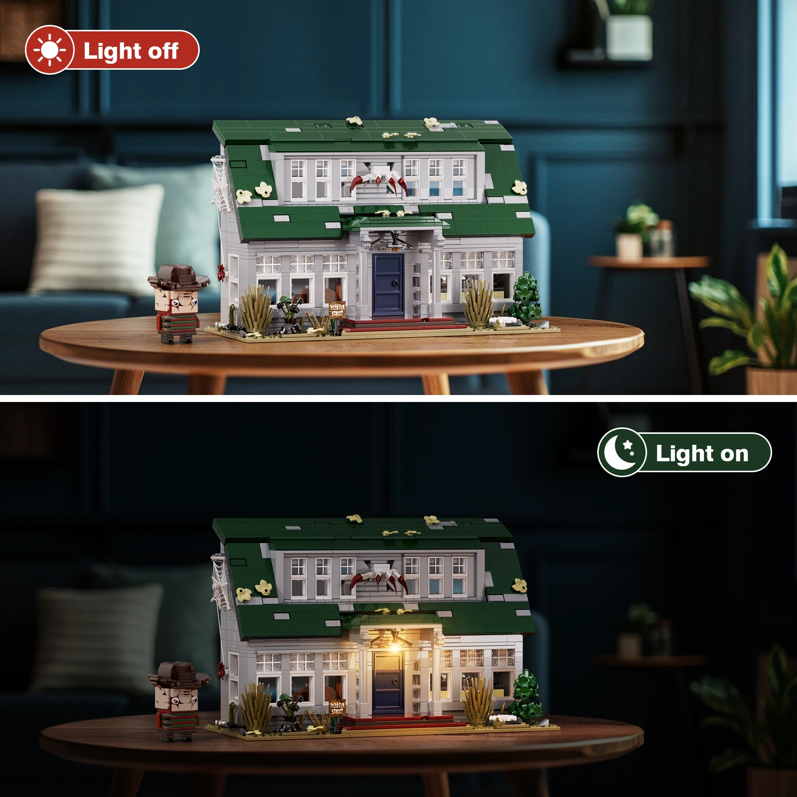 Elmed Street House Building Blocks Set Horror Movie Freddyed Hut Bricks Toys with Lights Home Plants Decor Gifts (1099 PCS)