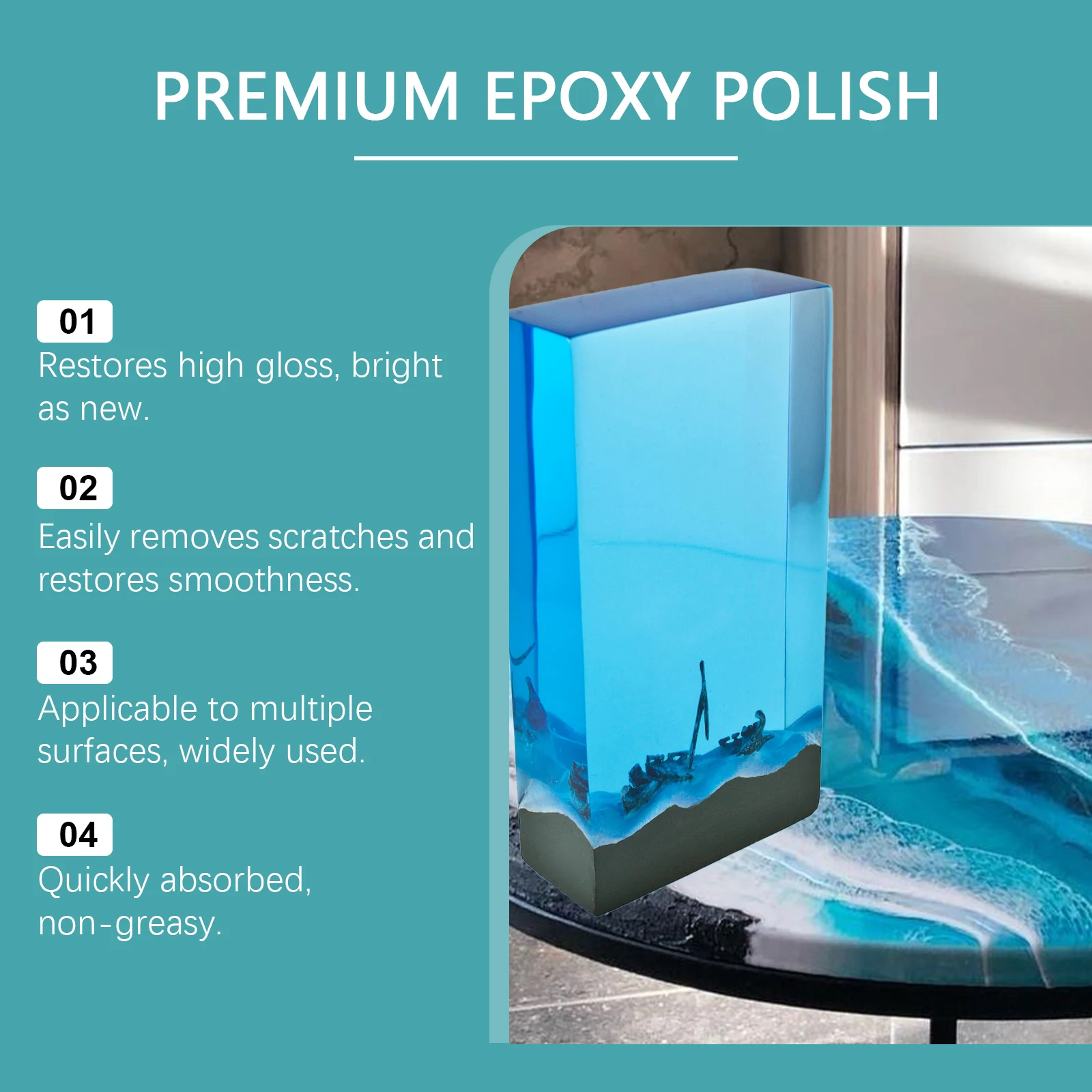 3. Suitable for a wide range of surfaces, including epoxy countertops, automotive resin dashboards, wood, and metal, meeting maintenance needs in various scenarios.