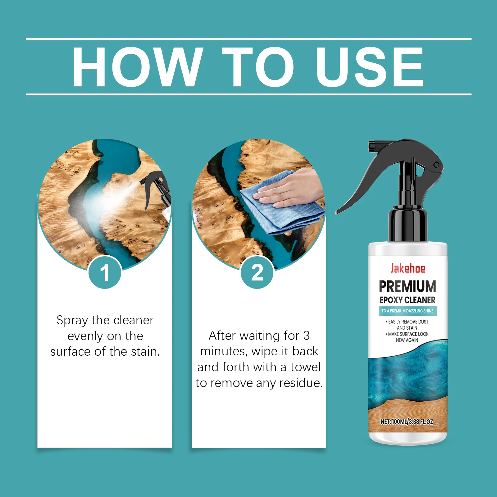 2. Wait 3 minutes, then wipe with a towel to remove any residue.