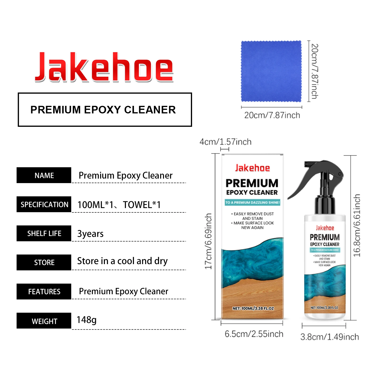 Cleaner Listing: Epoxy Resin Cleaner (100ml), Towel (1)