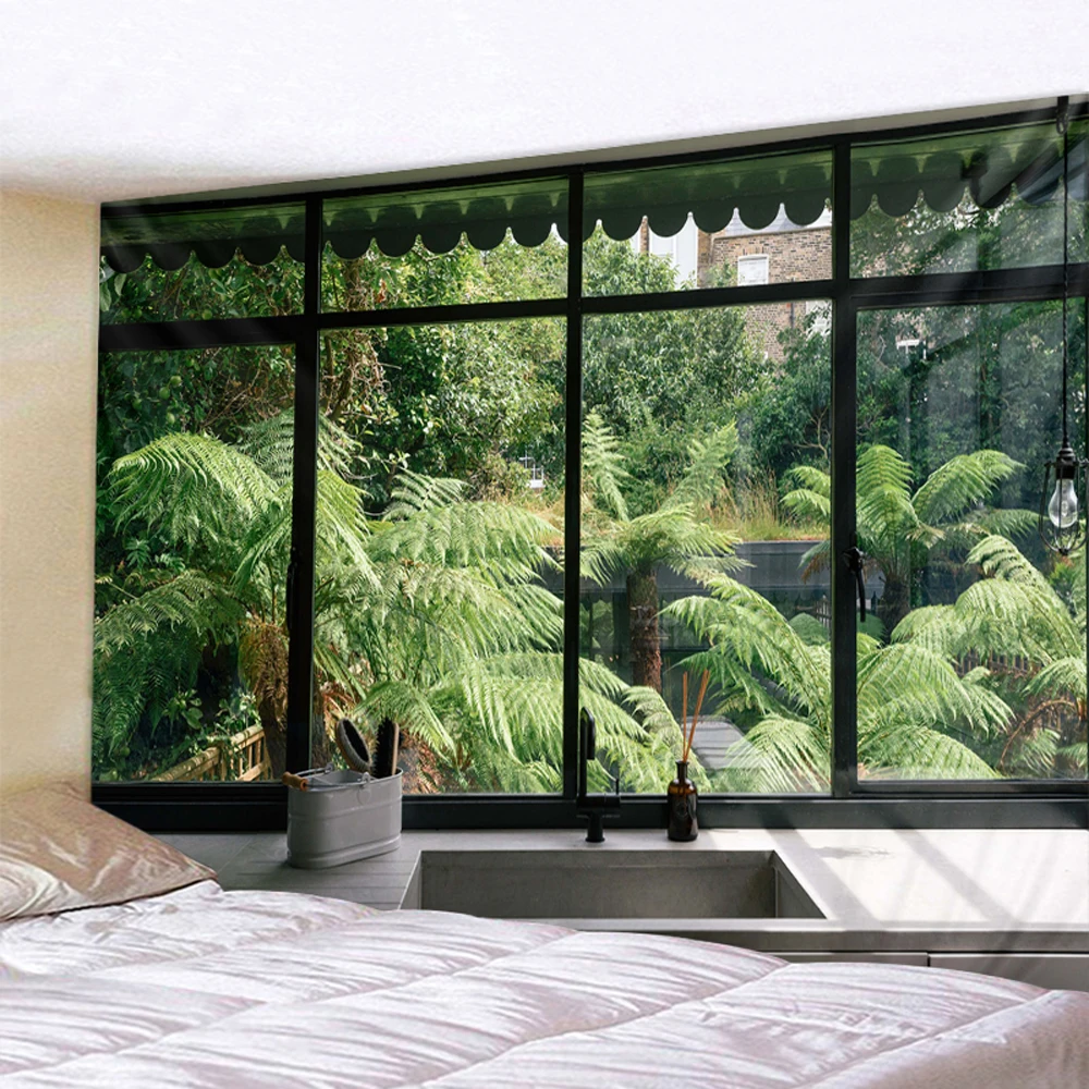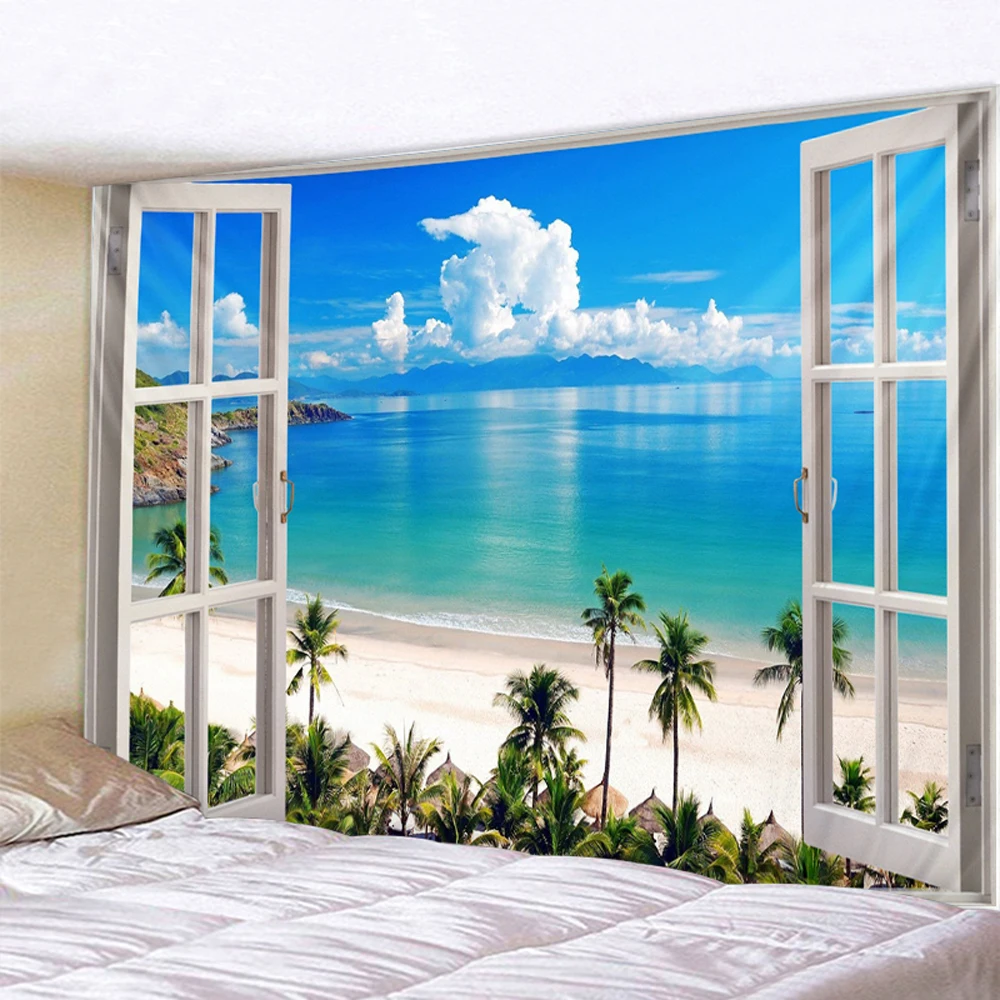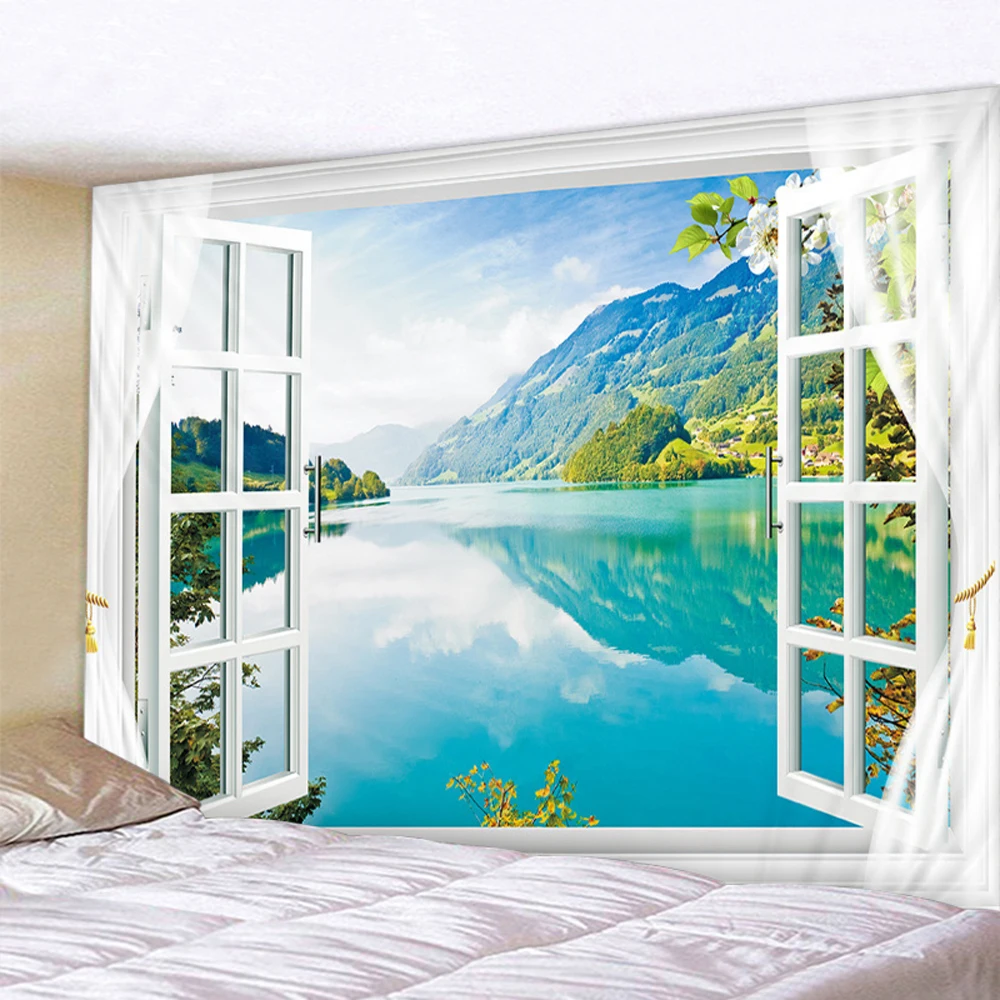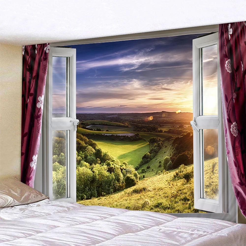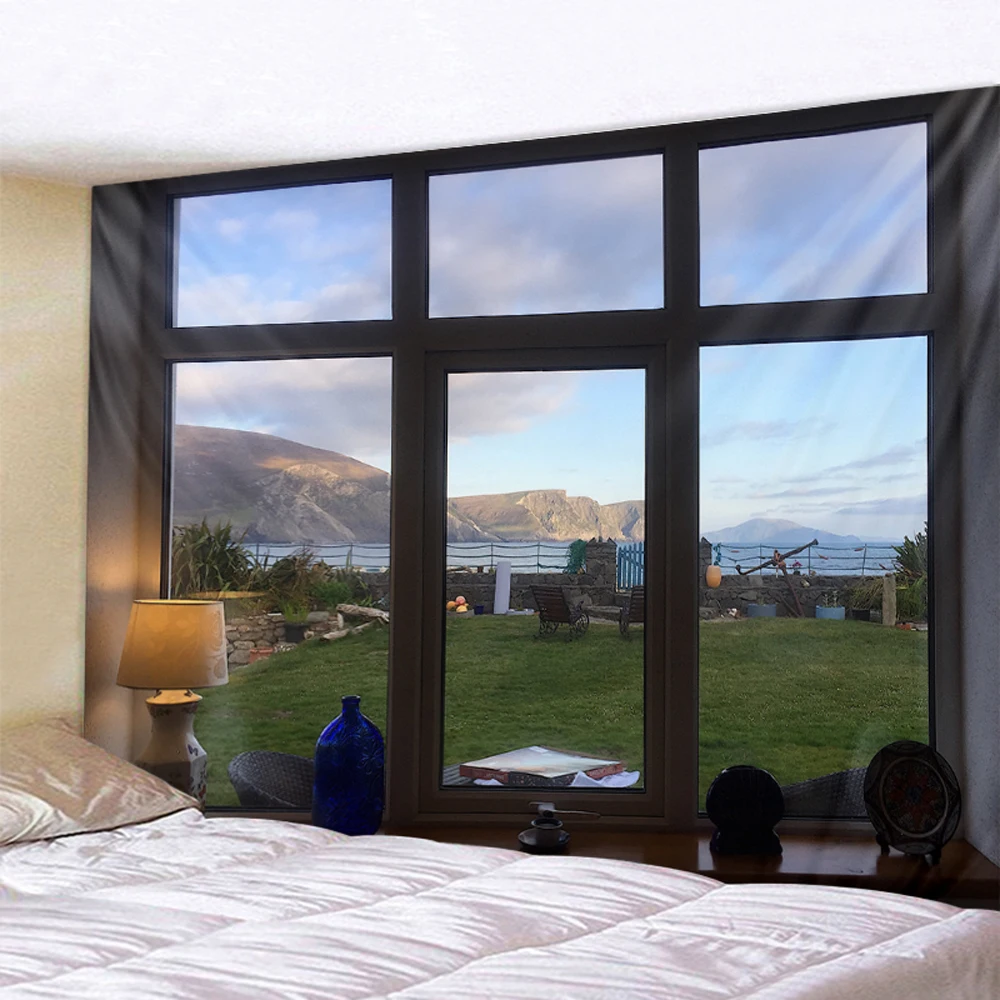 European-Style 3d Window Scenery Wall Hanging Tapestry Bohemian Art Deco Blanket Curtain At Home Bedroom Living Room