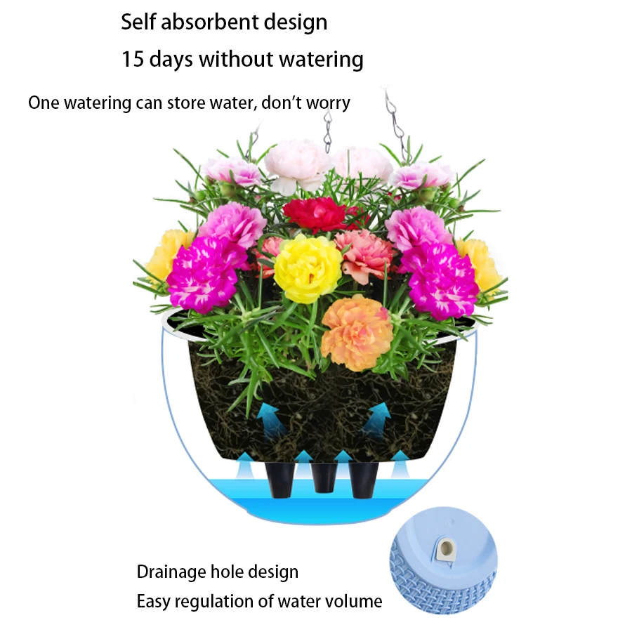 Our hanging basket is made of plastic, and the hanging chain is made of iron, which is more durable than plastic or cotton plantations.