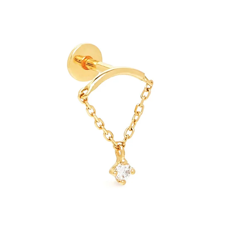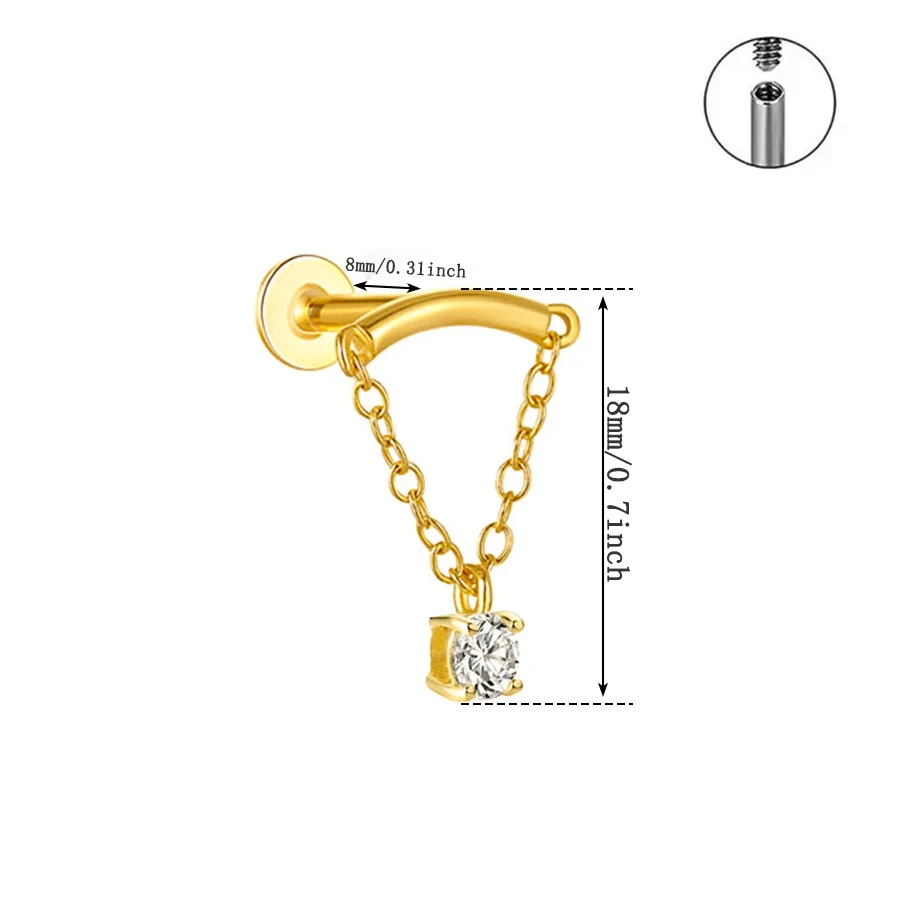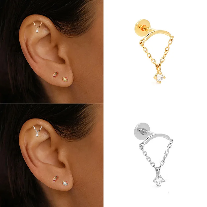 EVISPOL Fashion Stainless Steel Tassel Chain Dangle Stud Earrings for Women Crystal CZ Flat back Cartilage Ear Piercing Jewelry