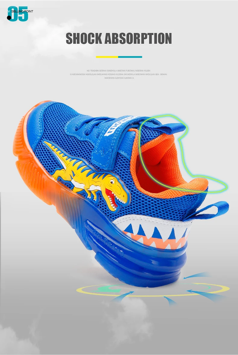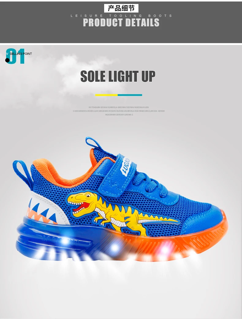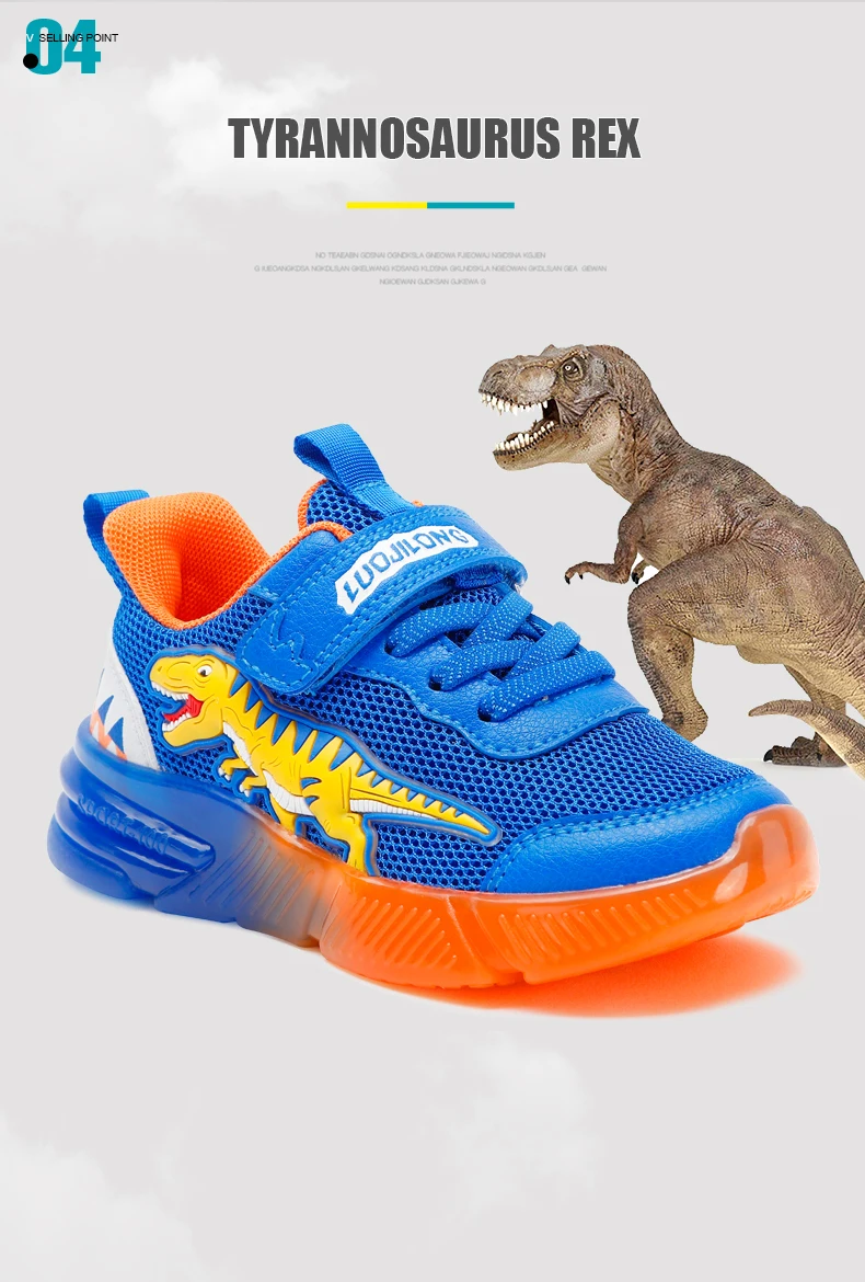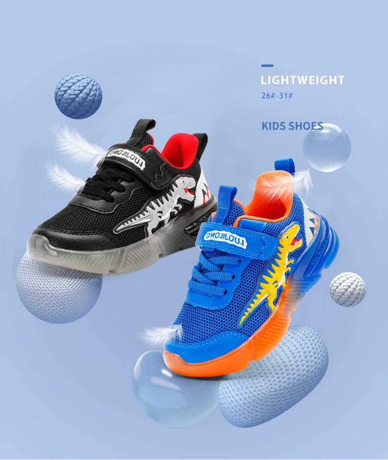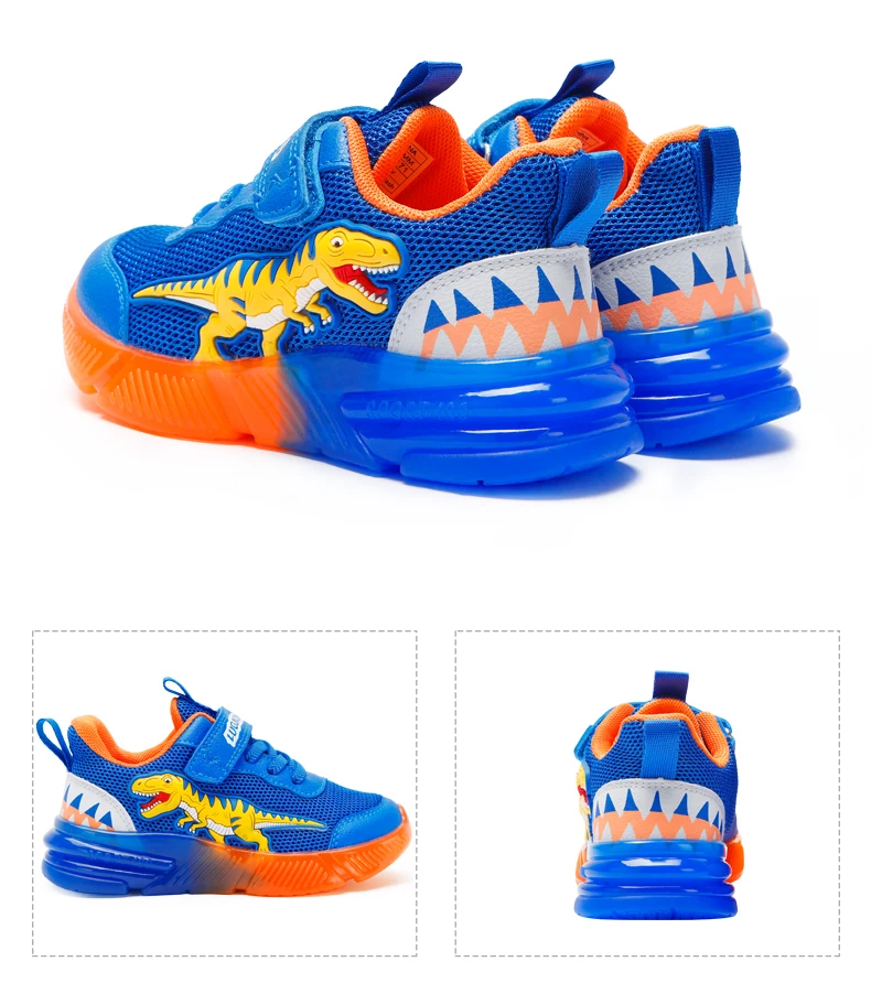 EXDINO Dinosaur 2-6 Children’s LED T-REX Mesh Autumn New Light Up Shoes Boys Little Kids Outdoor Casual Glowing Sports Sneakers