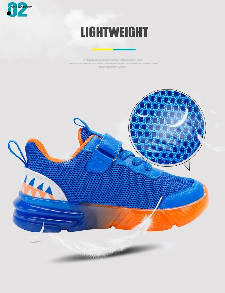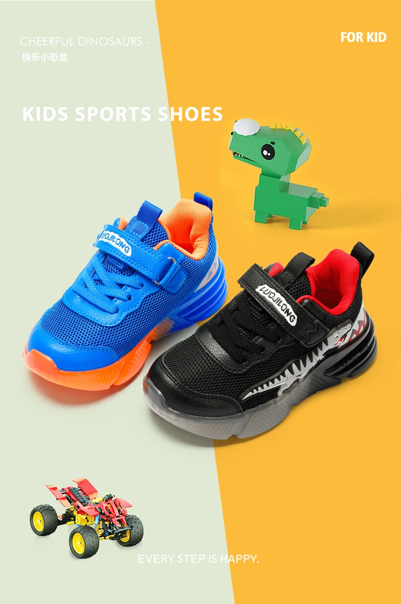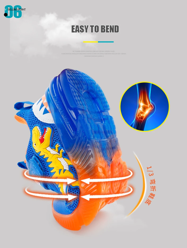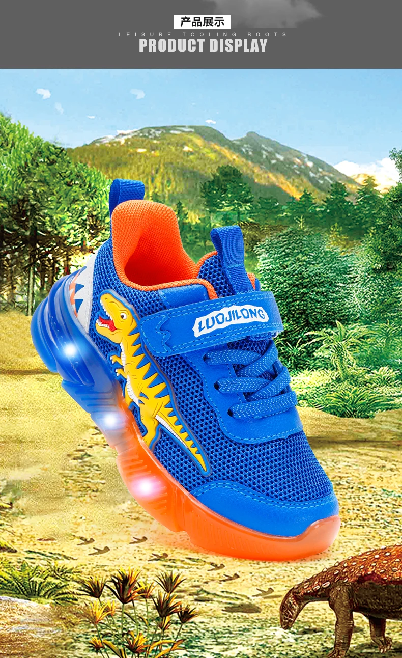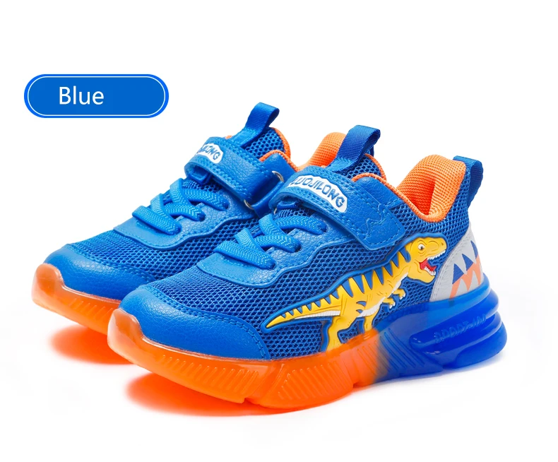 EXDINO Dinosaur 2-6 Children’s LED T-REX Mesh Autumn New Light Up Shoes Boys Little Kids Outdoor Casual Glowing Sports Sneakers