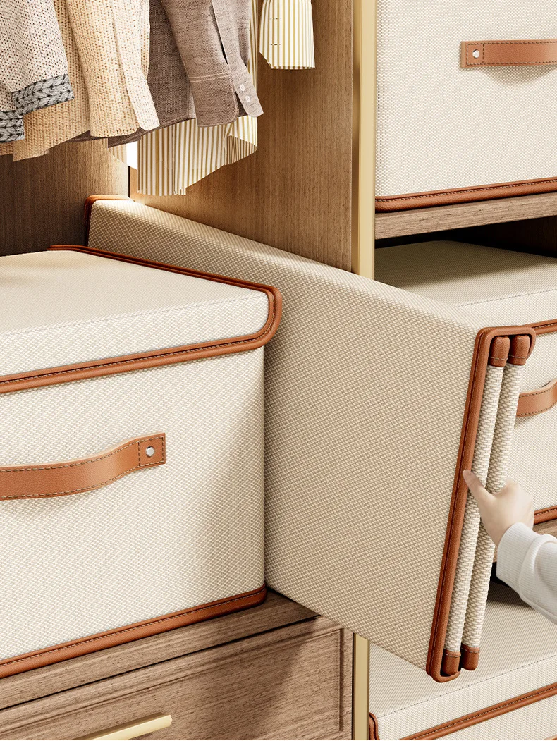 This storage box offers ample space for organizing your clothing, efficiently utilizing your wardrobe’s vertical space.