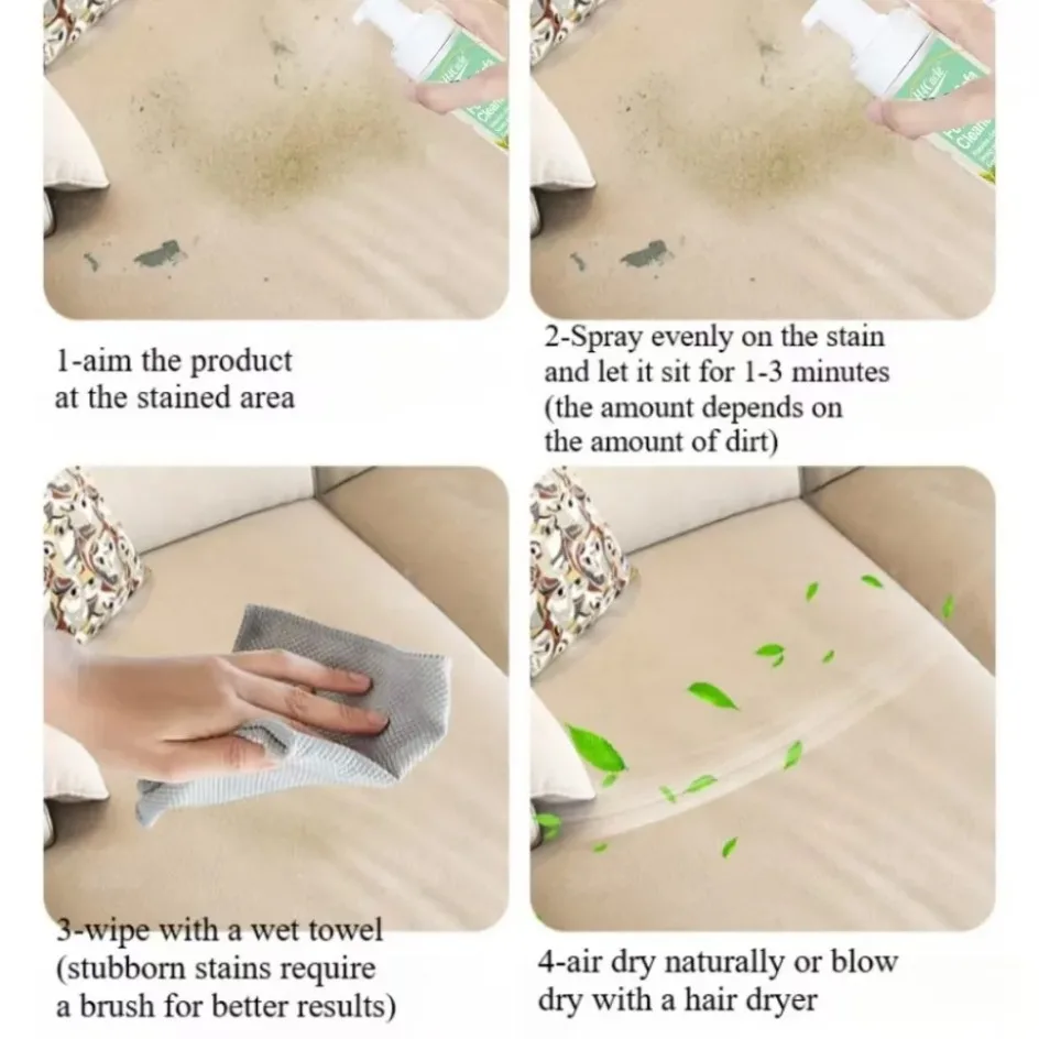 3. Fast effect- It is more efficient and quicker than liquid cleaners. It does not need to be washed, so your sofa, curtains, and carpet will be kept clean and fresh.