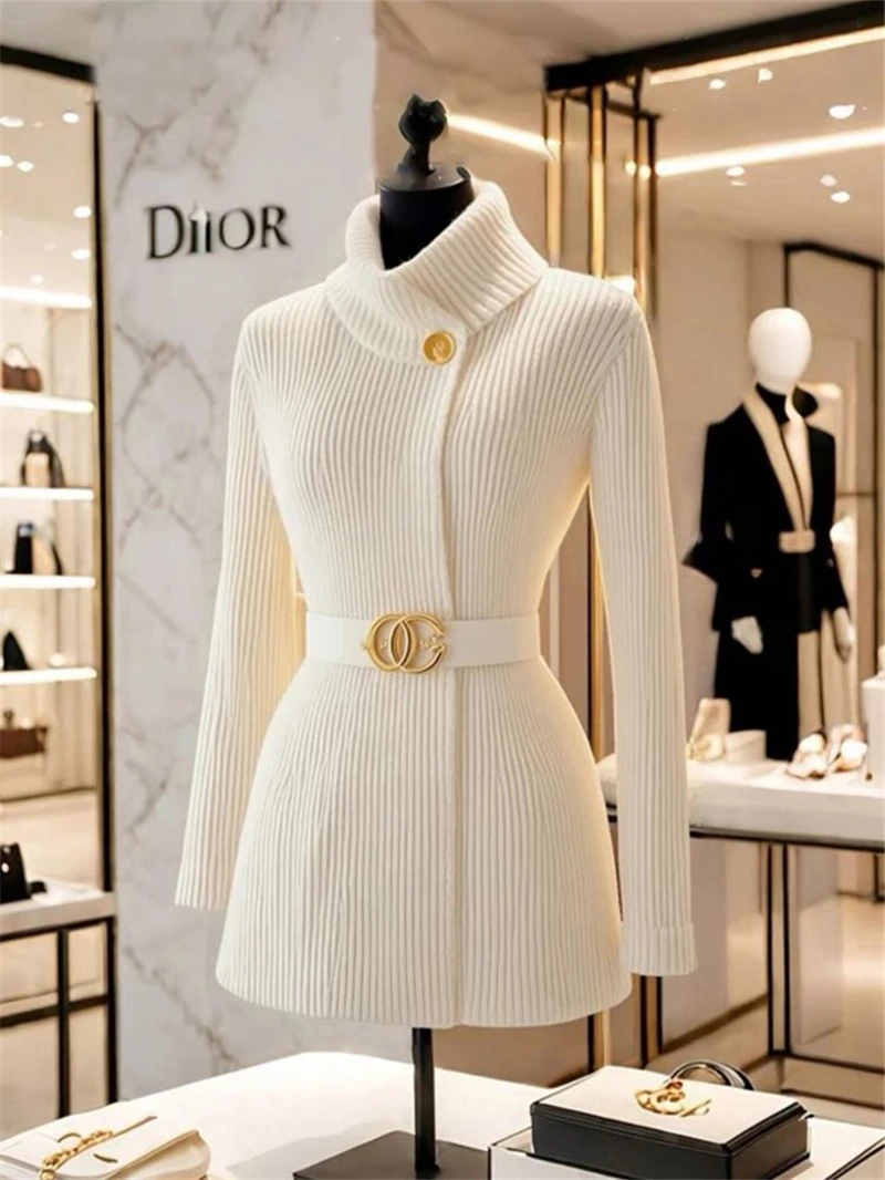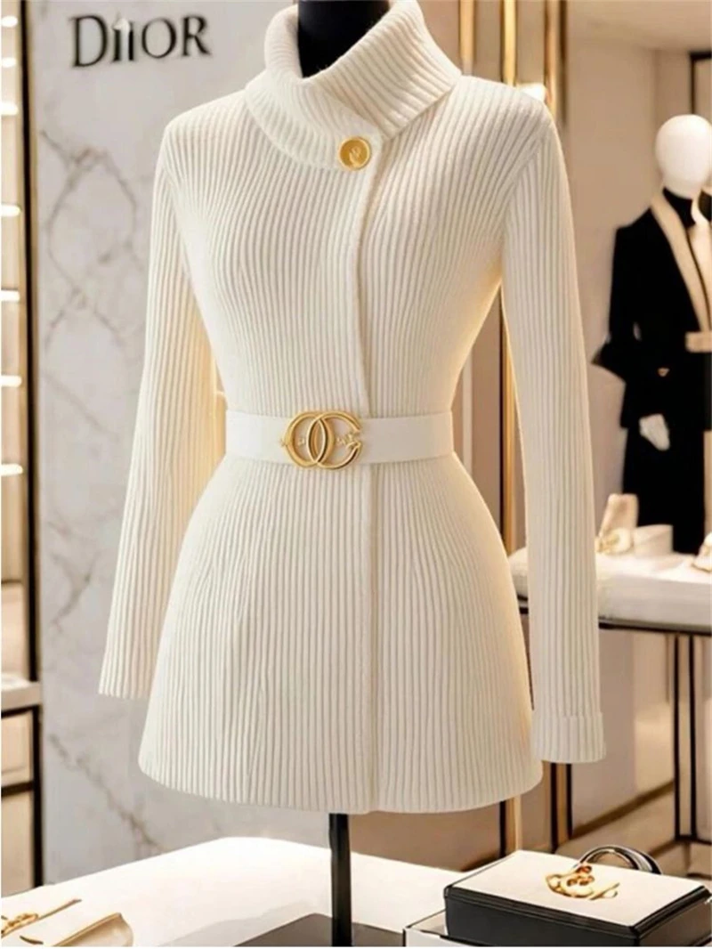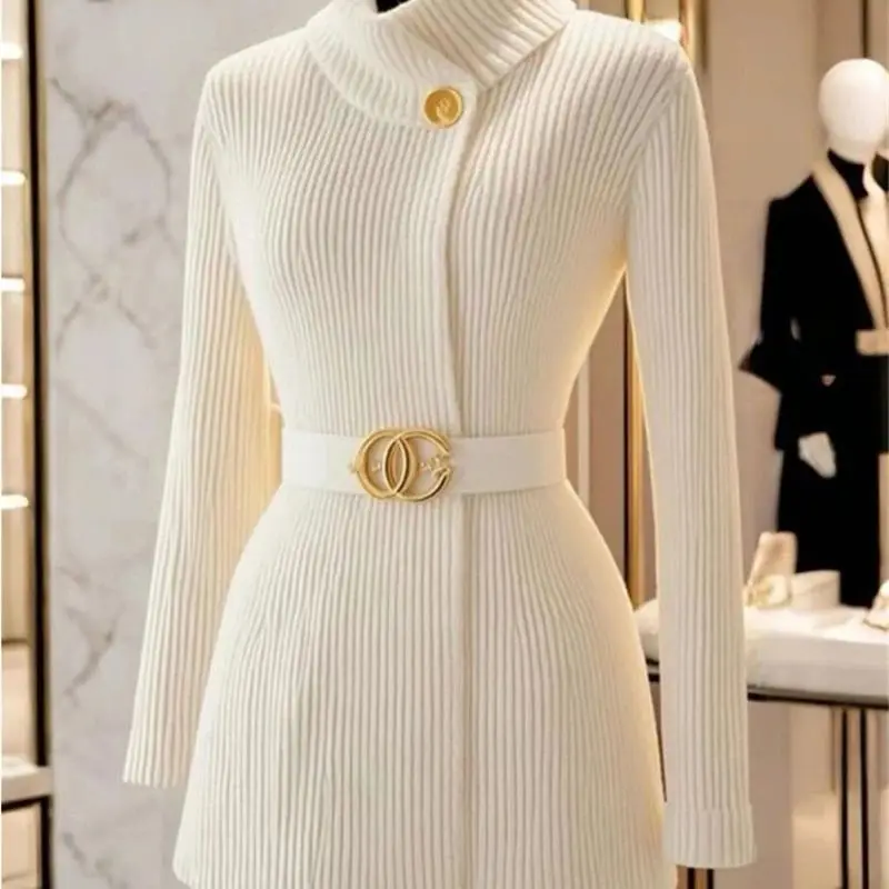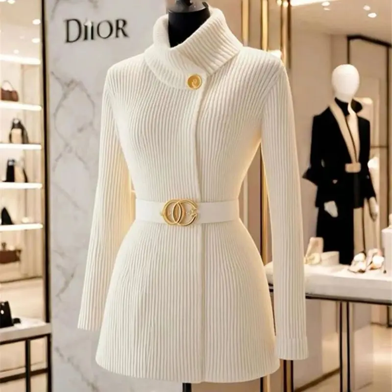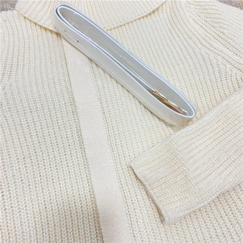 Be the first to review “Fashion Belt Wool Sweater Women Autumn Winter High End White Thick Knit Pullover Celebrity Turtleneck Long Knitwear Stylish 058H”