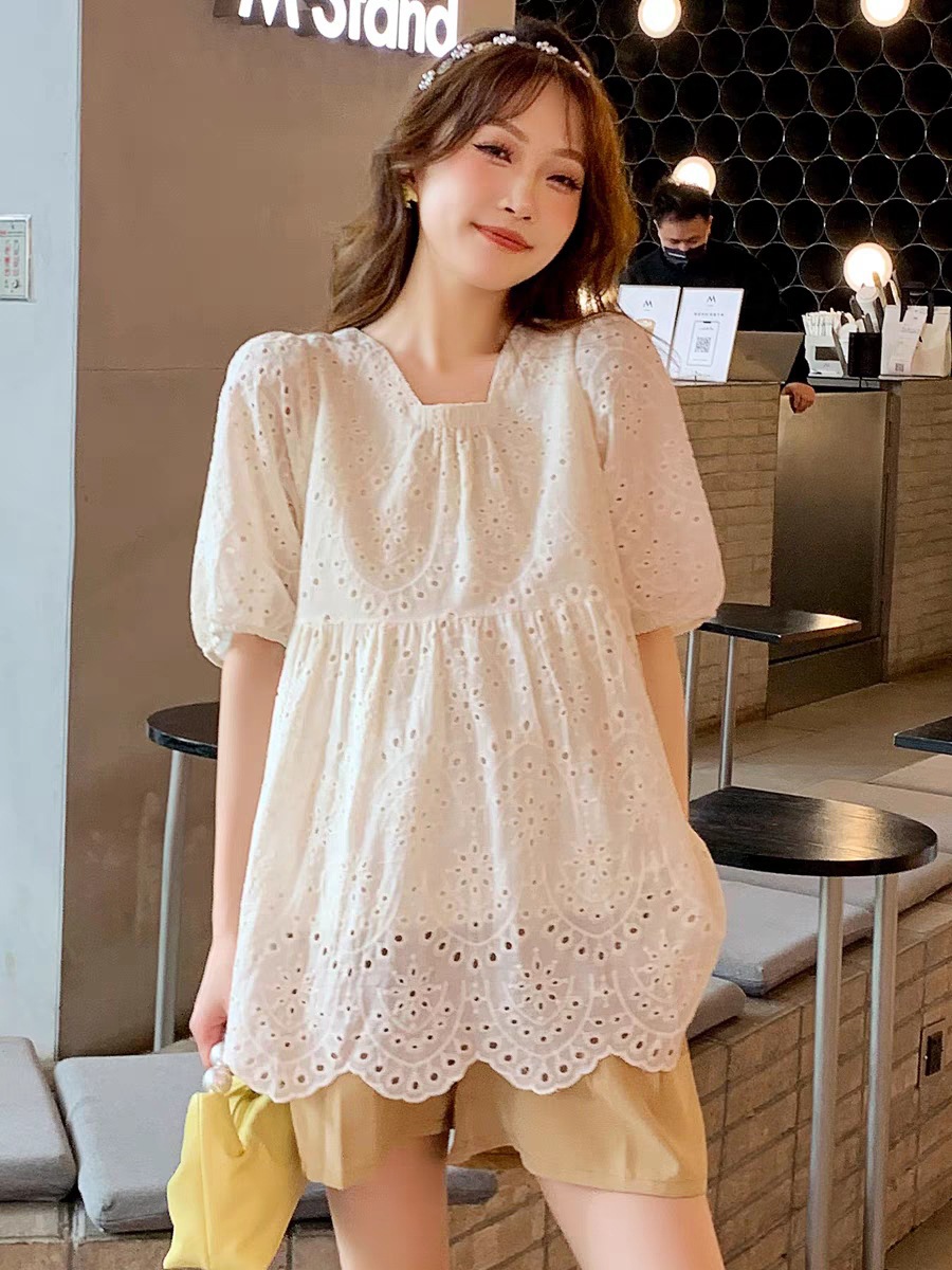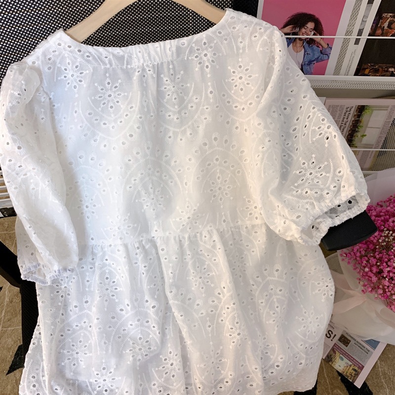 Be the first to review “Fashion Hollow Out White Embroidery Women Blouses Short Sleeve Casual Loose Shirts Summer Elegant Puff Sleeve Tops”