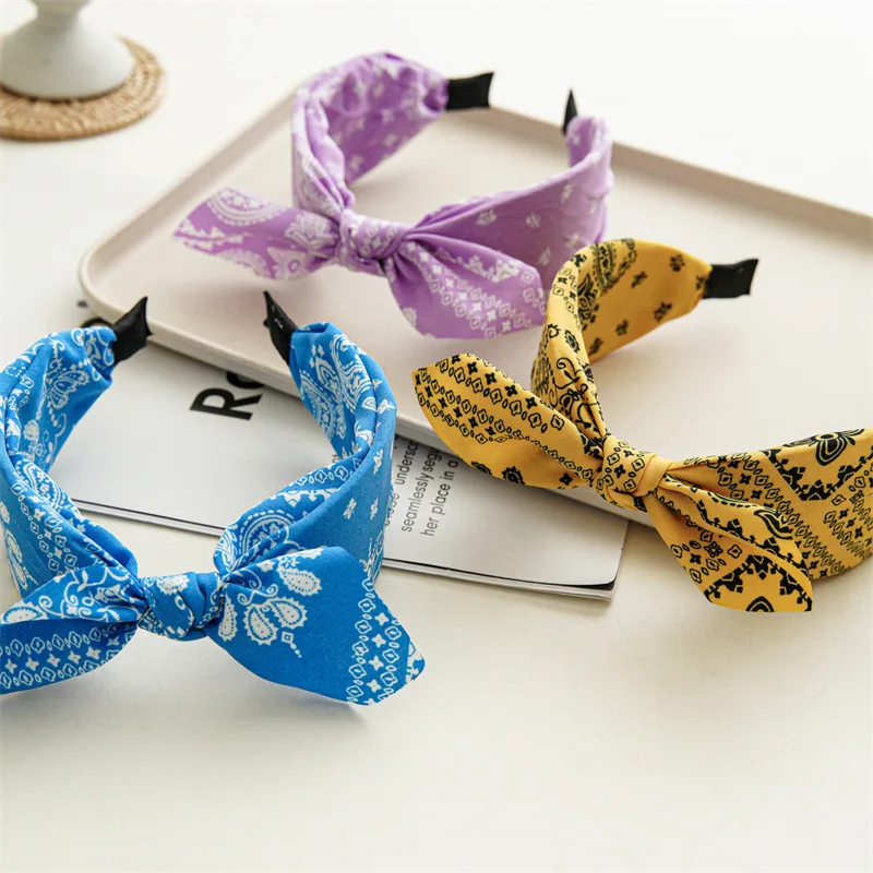 Fashion Paisley Bandana Headband for Women Top Knotted Bow Hairbands Cute Rabbit Ear Turban Headwrap Hair Band Girls Accessories