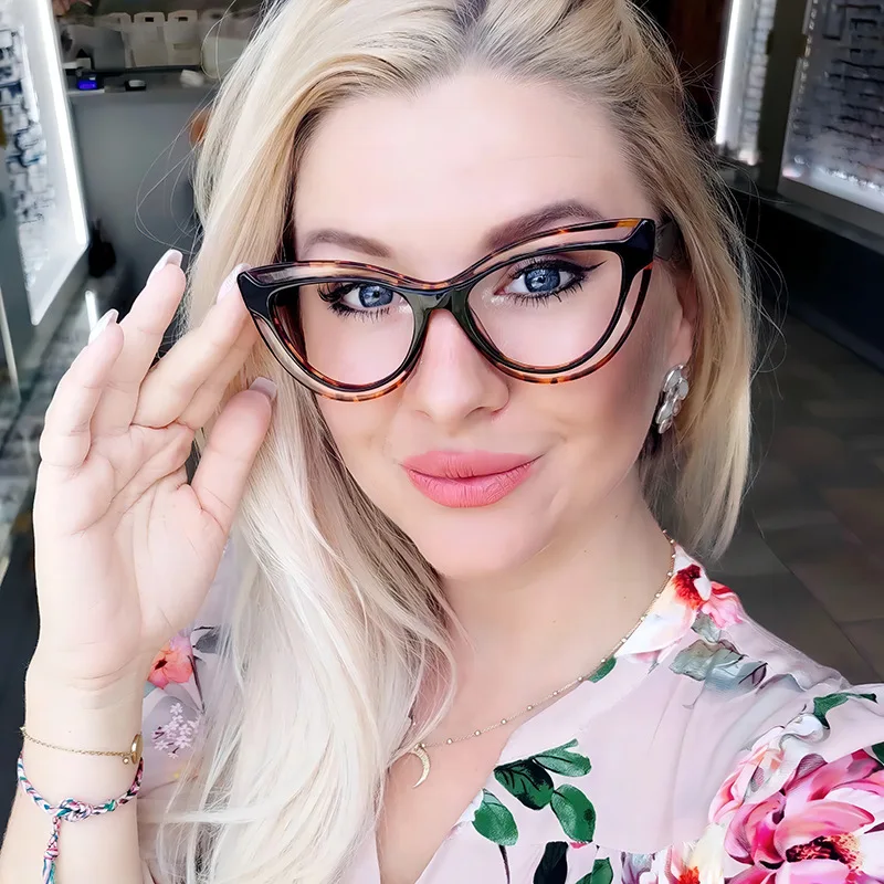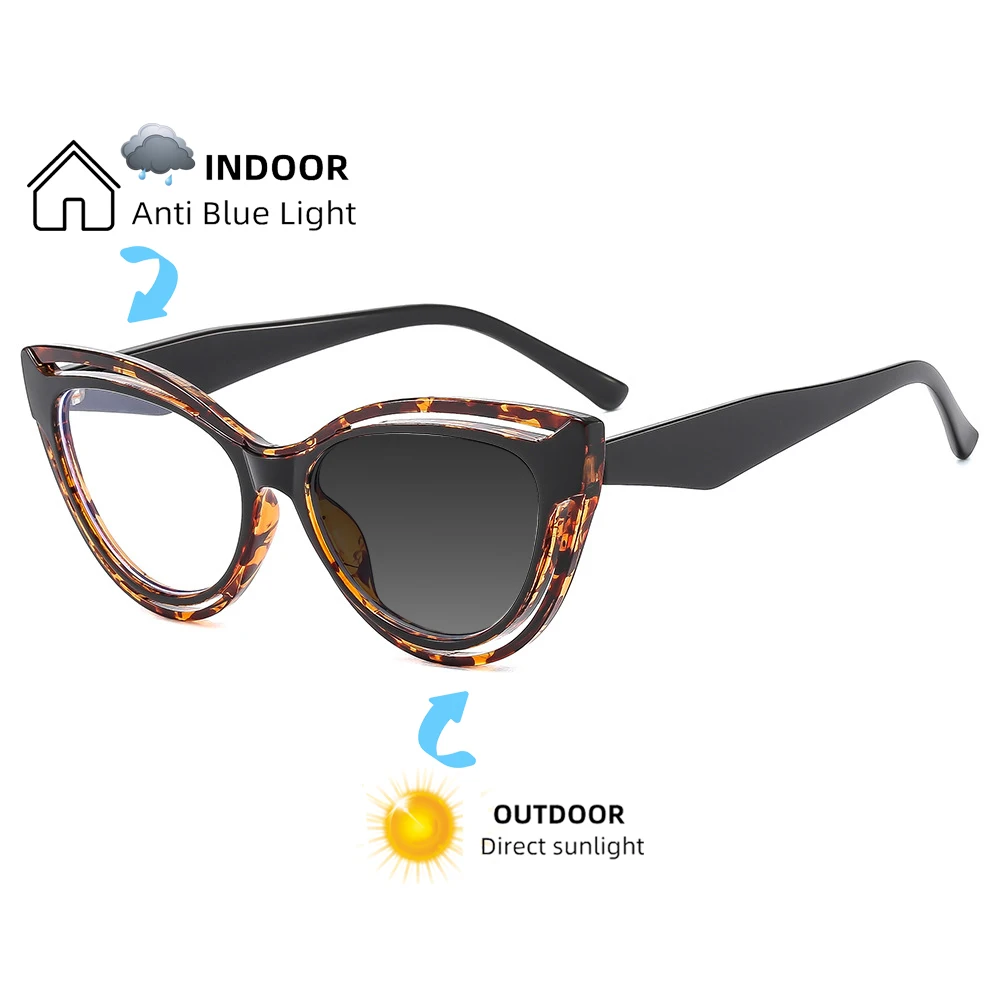 Fashion Retro Cat Eye Ladies Frame Anti Blue Light Photochromic Prescription Farsightedness Reading Glasses Degree +1.5 +2.5 +6