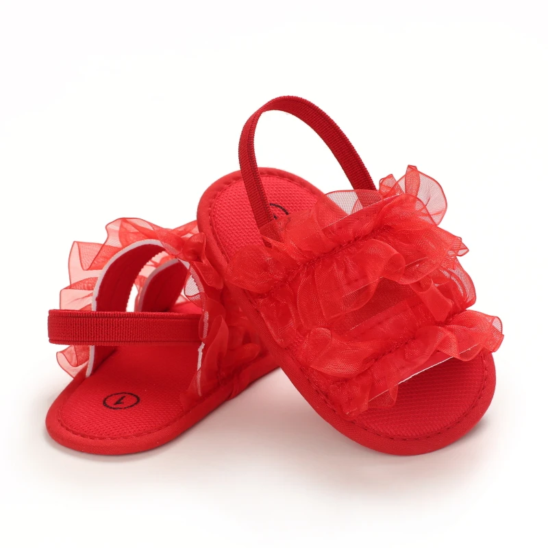 Fashion Young Children New Born Baby Girl Princess Shoes Lace Toddler Summer Sandal Non-Slip Shoes First Step Car 0-18M