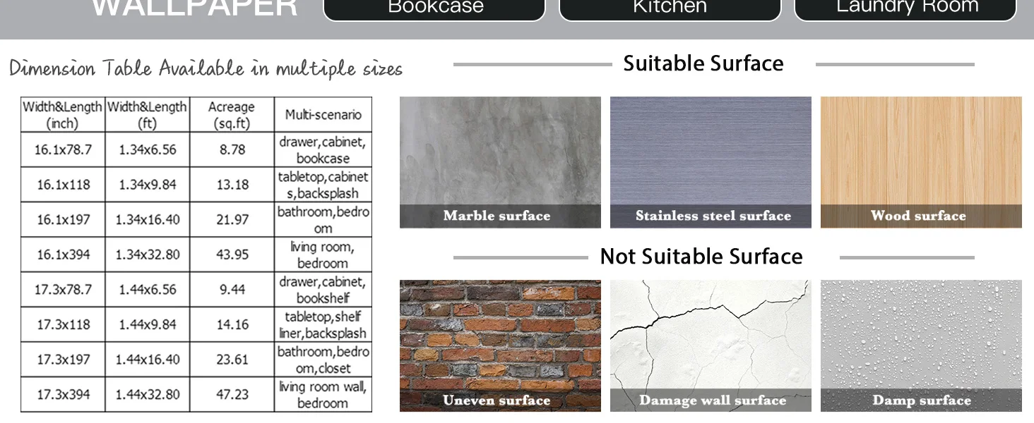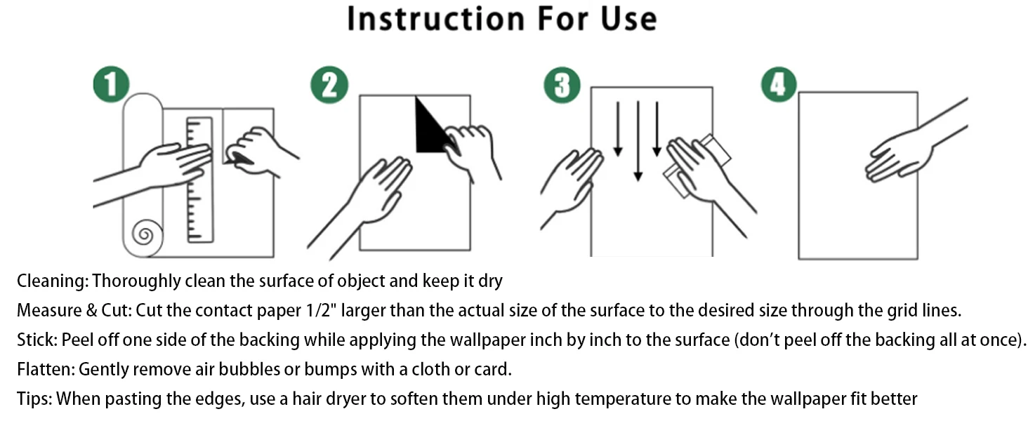 【Warm Tips】Removable Wallpaper Clean the surface and make sure it is dry before use. While peel off the paper on the back, while sticking to the smooth surface, to prevent the wallpaper from sticking together.