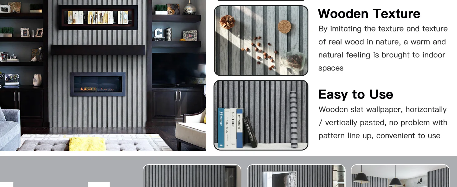 【Multifunctional】Grey slats wood wallpapers contact paper ideal for DIY or Refurbished any size furniture surfaces, such as cabinets, countertops, dresser drawers, handicrafts, nightstands, bookcases, shelves, doors, etc, It is also a nice wallpaper for decoration your walls.