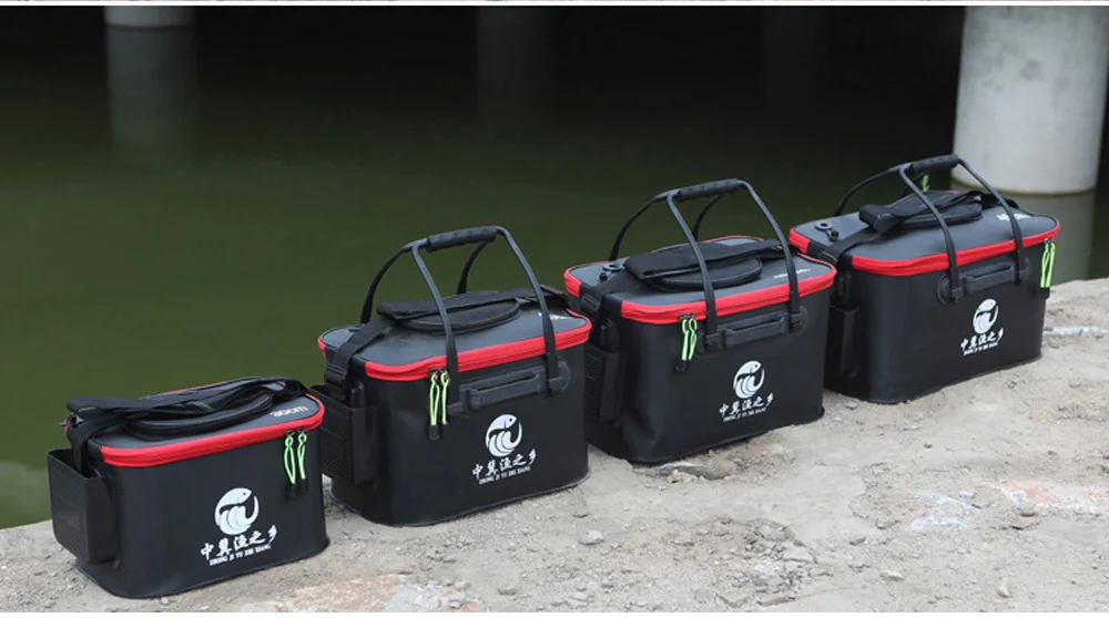 Fishing Bucket 30/40/50cm Tackle Bag with Side Pocket Folding Live Fish Box Outdoor Waterproof Camping Hiking Water Storage Bags
