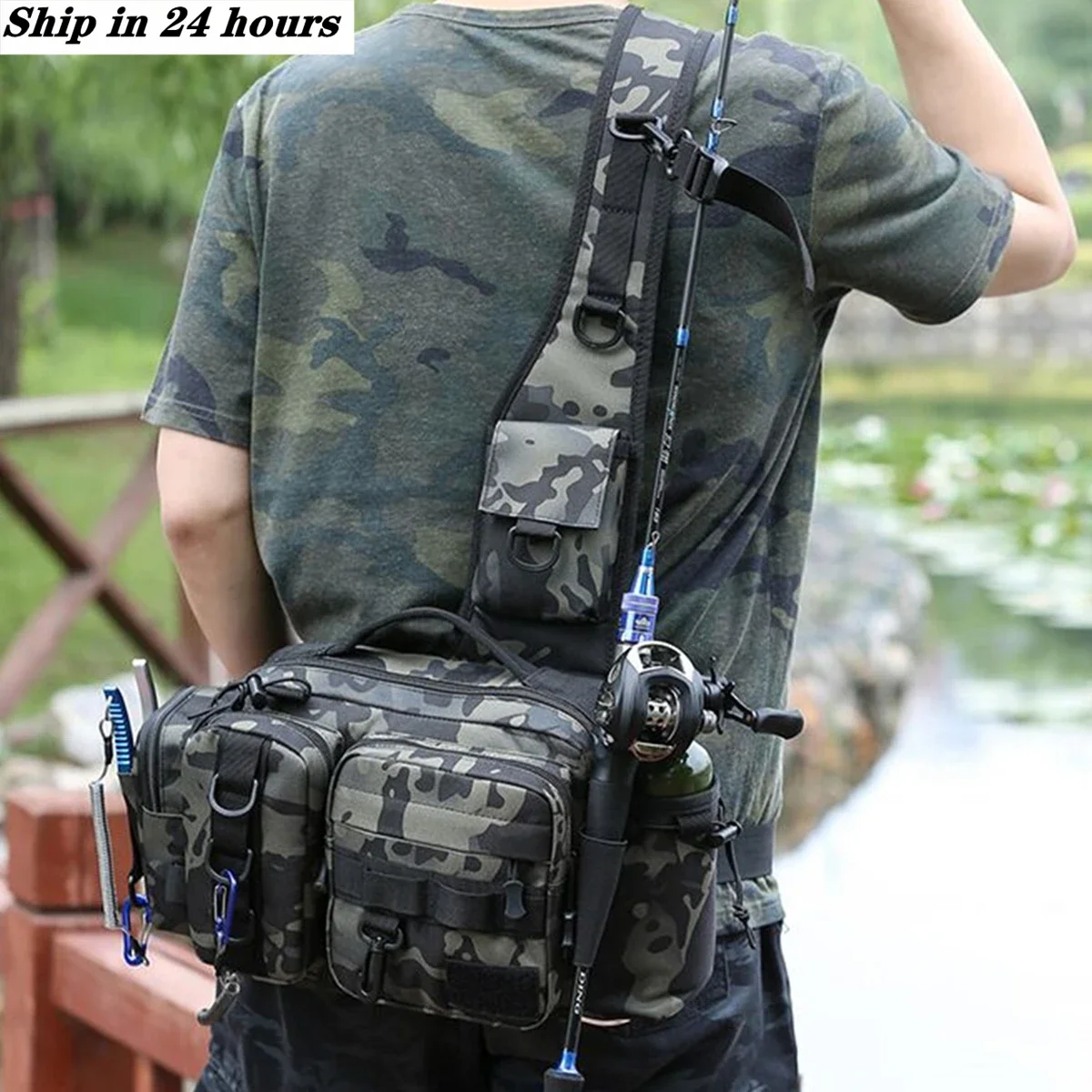 Fishing Tackle Bag Fly Fishing Backpack Chest Sling Portable Shoulder Fanny Waist Pack for Men Fishing Rod Lure Box Camping Bag