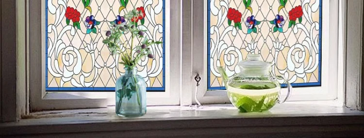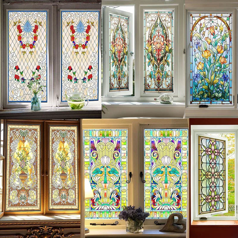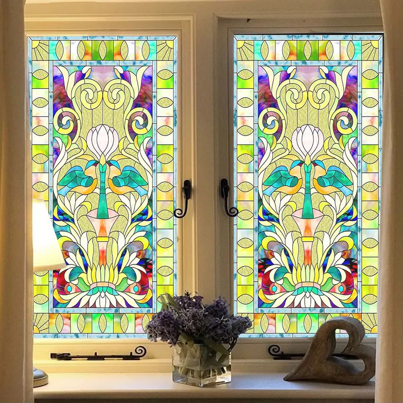 Flower Glass Film Electrostatic Frosted Stained Glass Window Film Glass in Lood Raamfolie Window Privacy Film Stickers